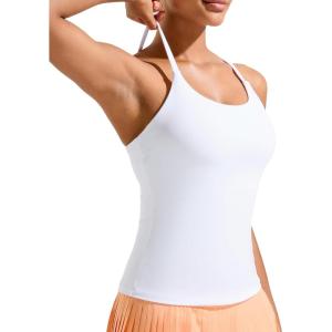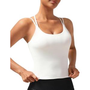 RUNNING GIRL Yoga Tank Tops for Women Built in Shelf Bra B/C Cups Strappy Back Activewear Workout Compression Tops(Z-bright White)