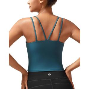 RUNNING GIRL Yoga Tank Tops for Women Built in Shelf Bra B/C Cups Strappy Back Activewear Workout Compression Tops(C-acyan Blue)