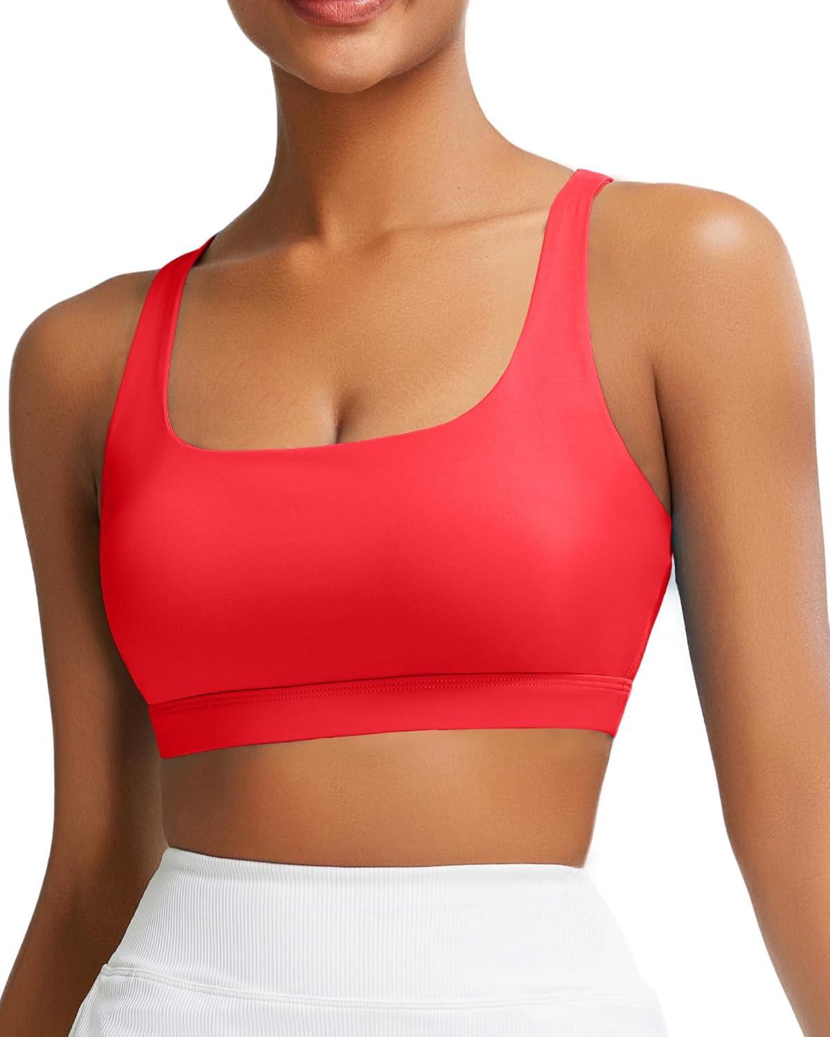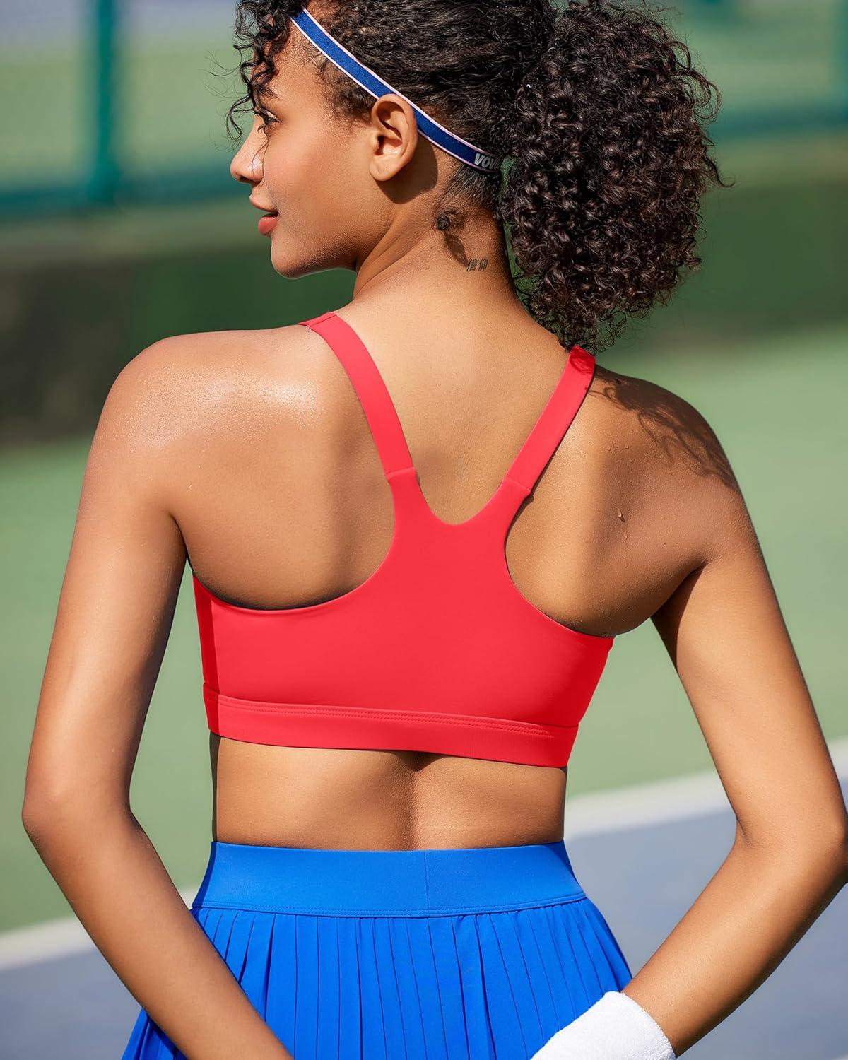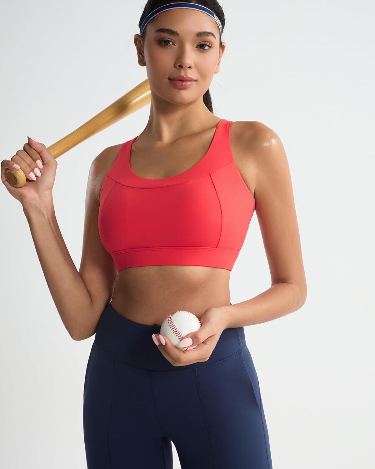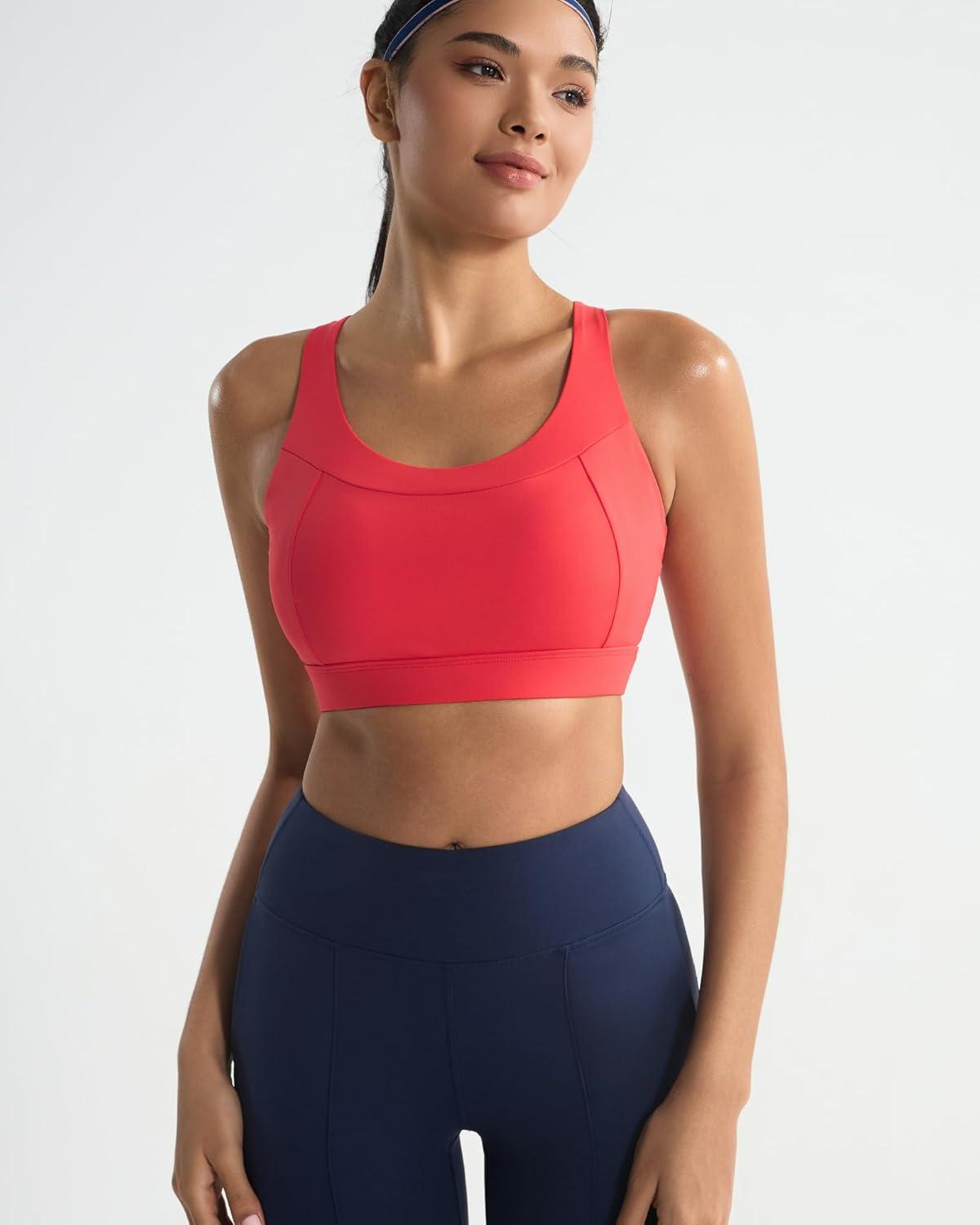 RUNNING GIRL Sports Bra for Women, Molded Cup High Impact Sports Bras for Women with Sewn in Pads(Deep Red)