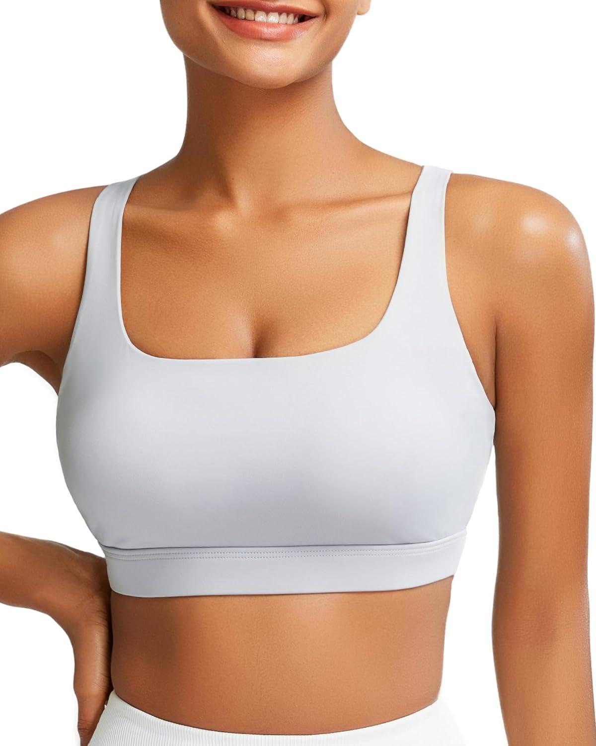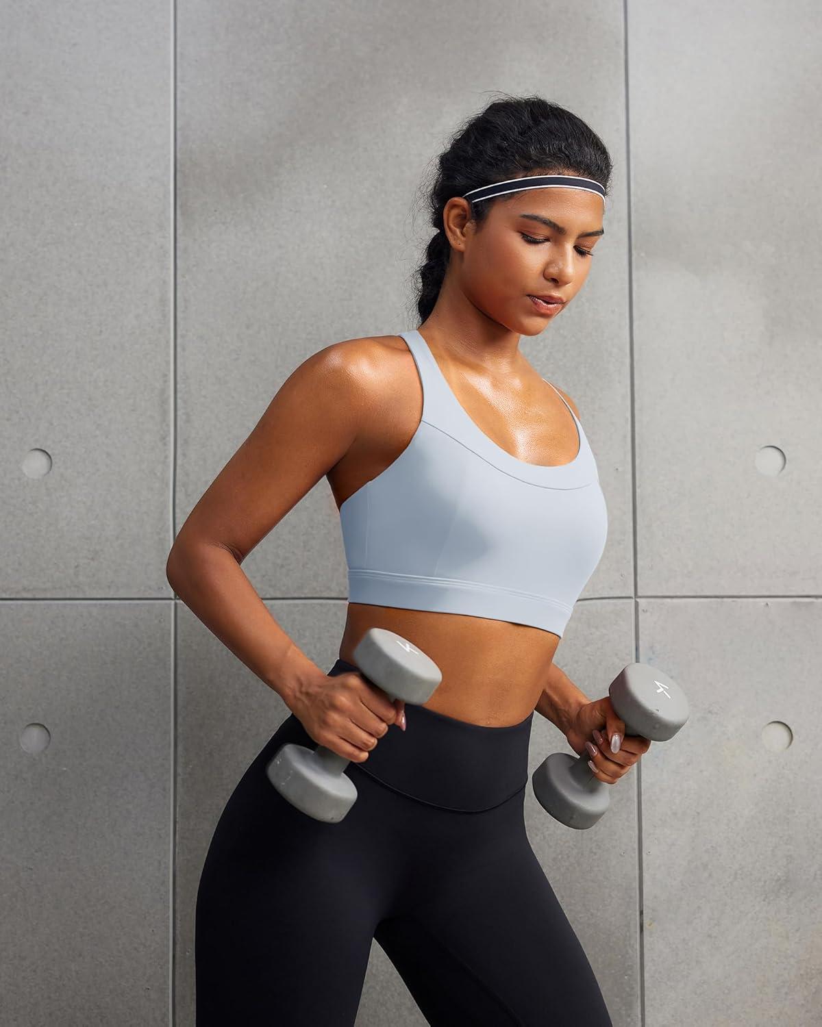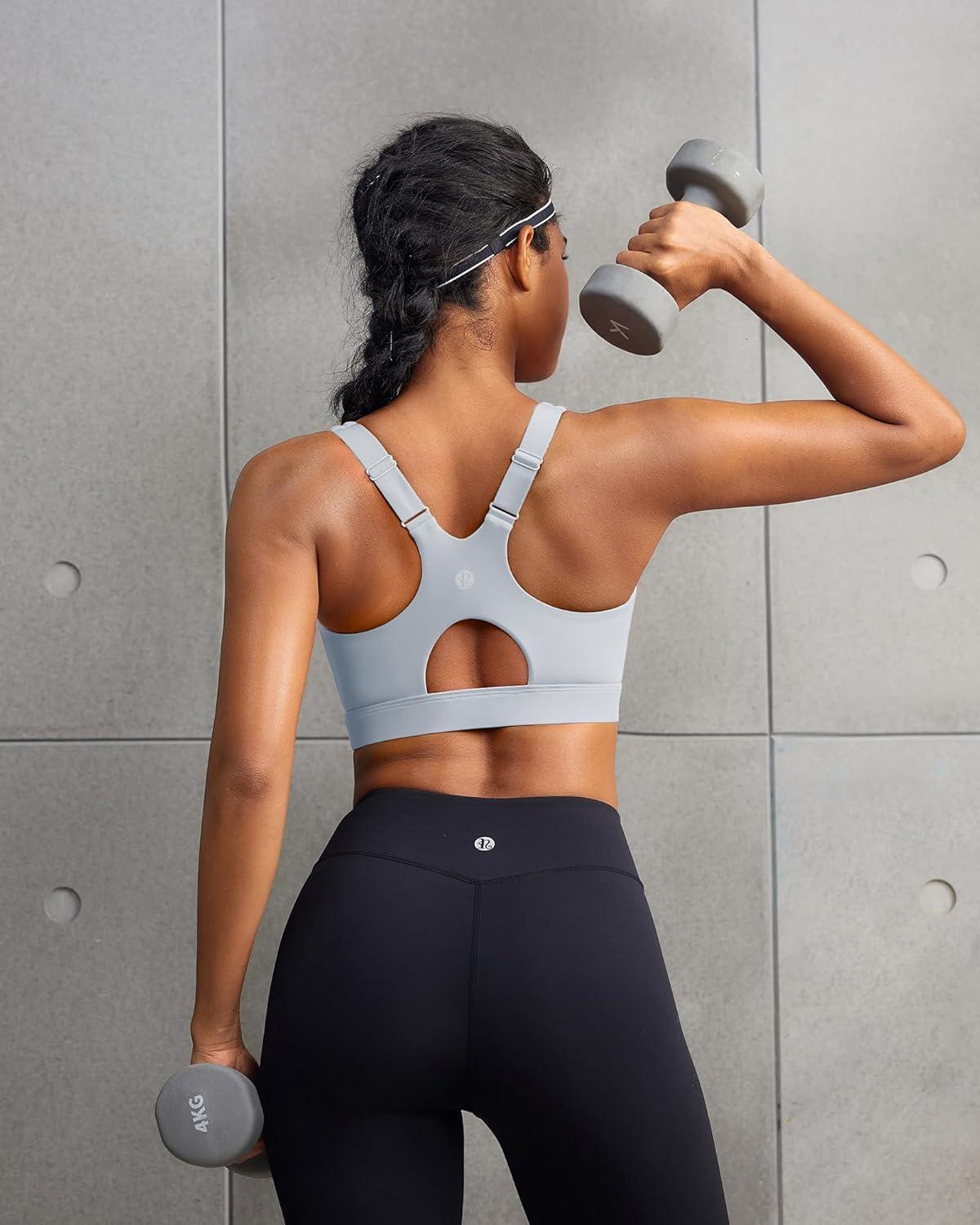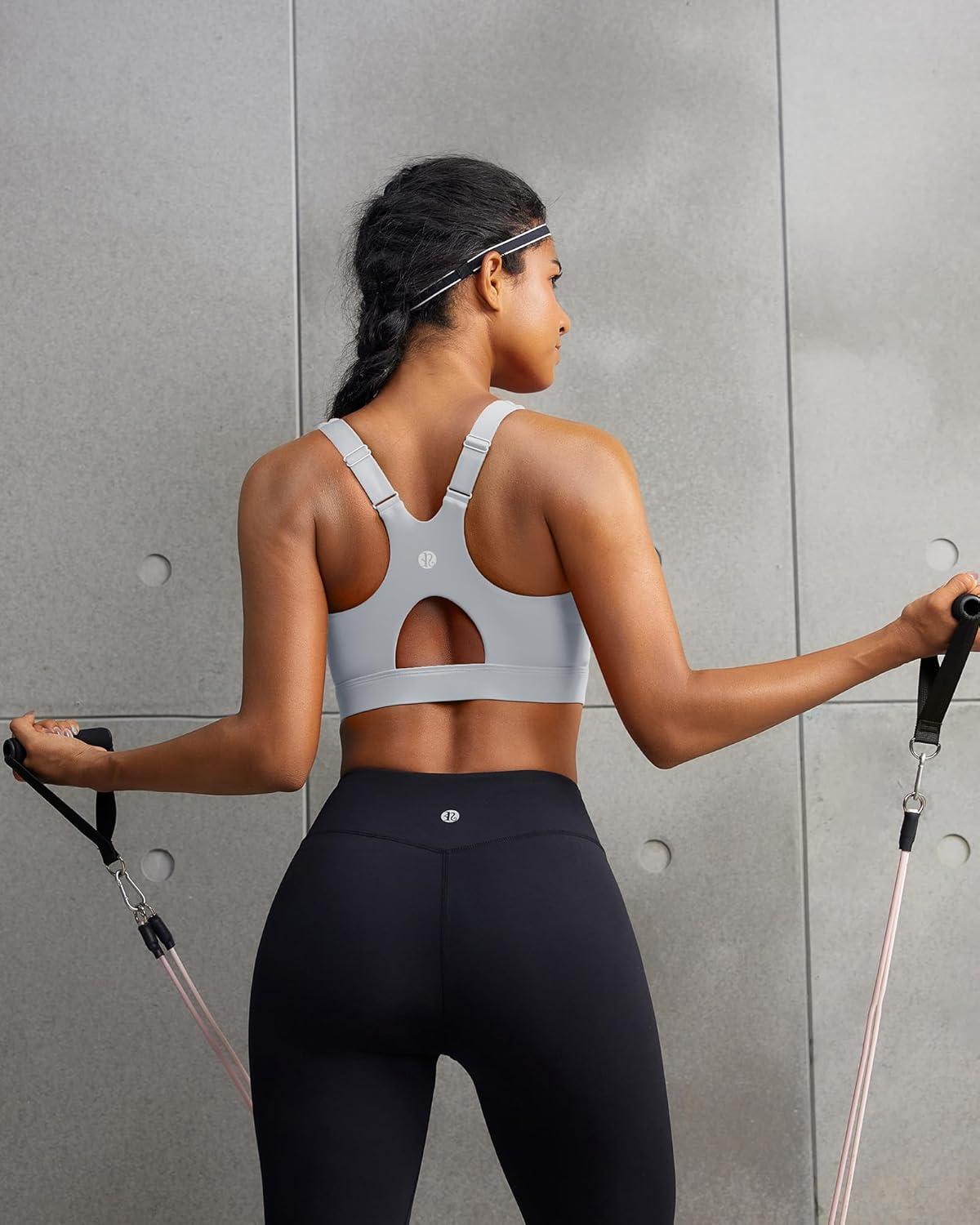 RUNNING GIRL Sports Bra for Women,Adjustable Straps Molded Cup High Impact Sports Bras for Women with Sewn in Pads(Grey)