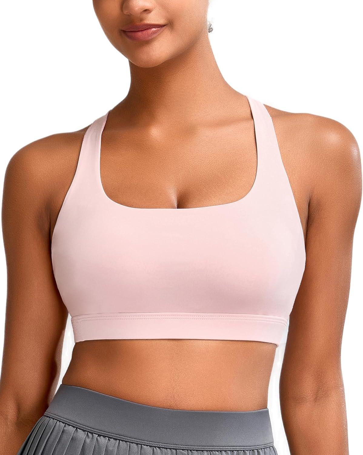 RUNNING GIRL Sports Bra for Women, Molded Cup High Impact Sports Bras for Women with Sewn in Pads(Pink)