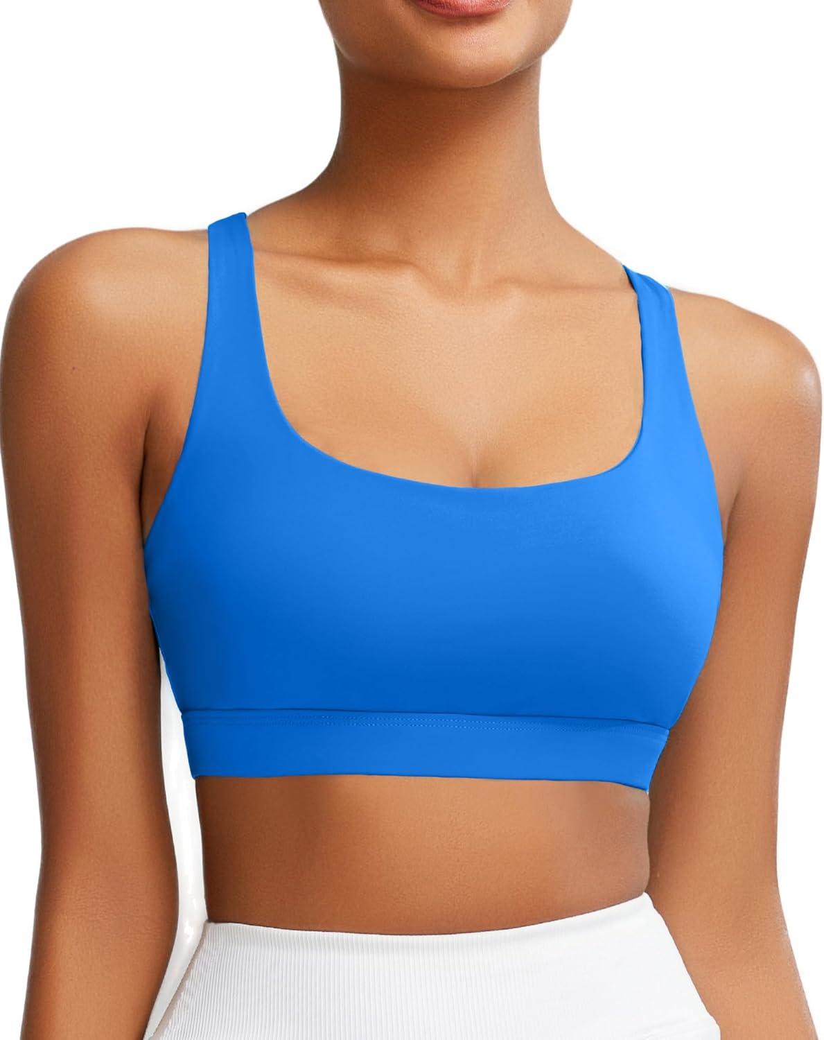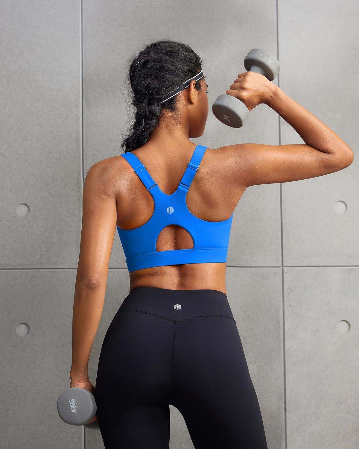 RUNNING GIRL Sports Bra for Women, Molded Cup High Impact Sports Bras for Women with Sewn in Pads(Blue)