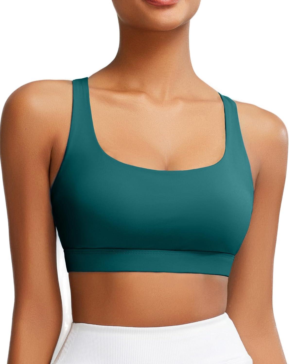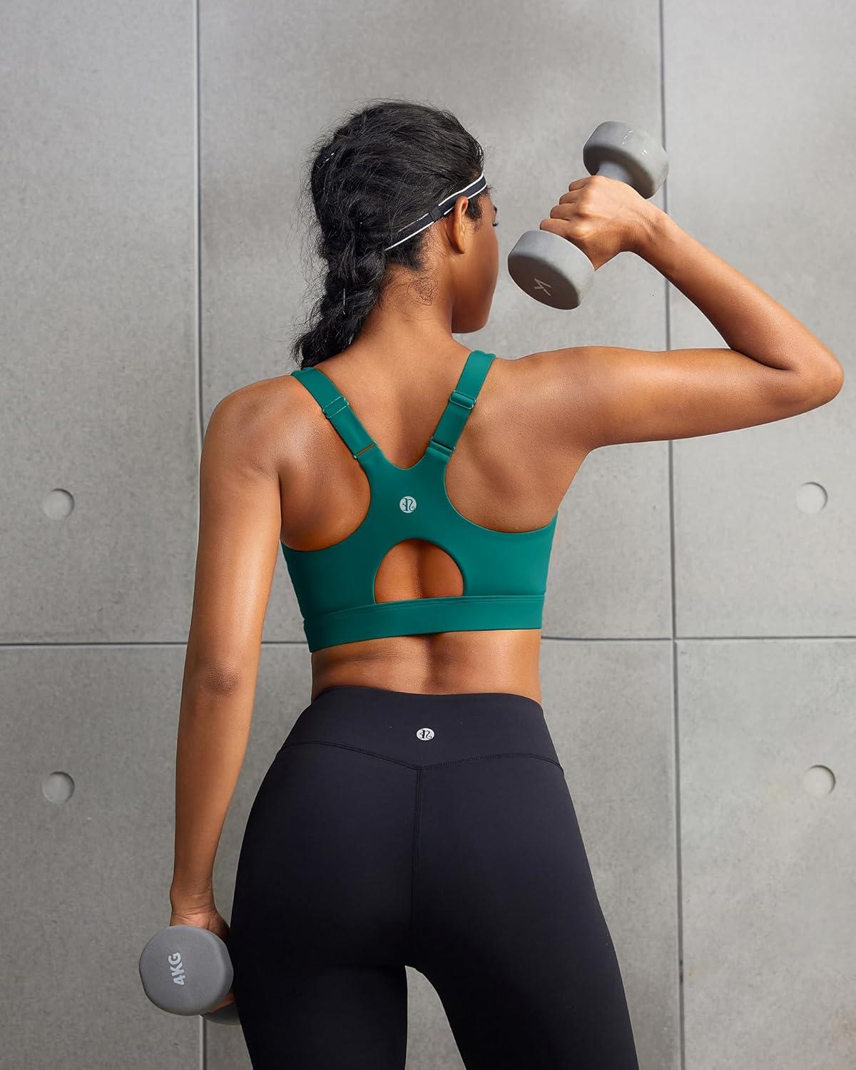 RUNNING GIRL Sports Bra for Women,Adjustable Straps Molded Cup High Impact Sports Bras for Women with Sewn in Pads(Teal)