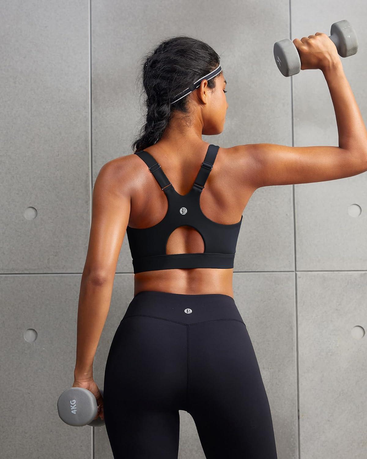 RUNNING GIRL Sports Bra for Women,Adjustable Straps Molded Cup High Impact Sports Bras for Women with Sewn in Pads(Black)