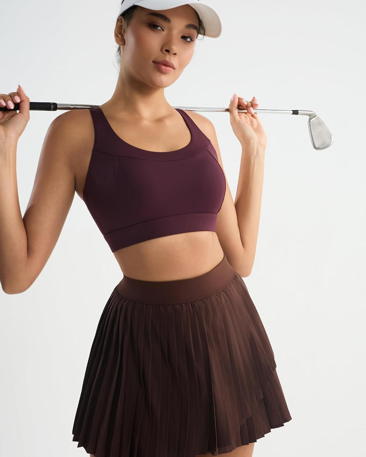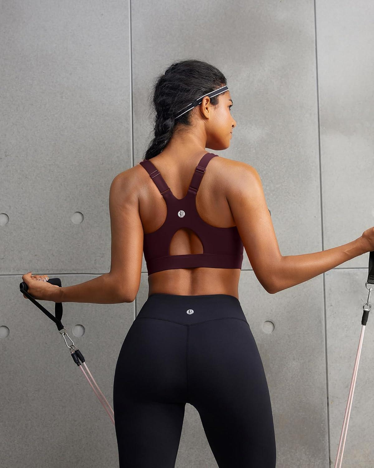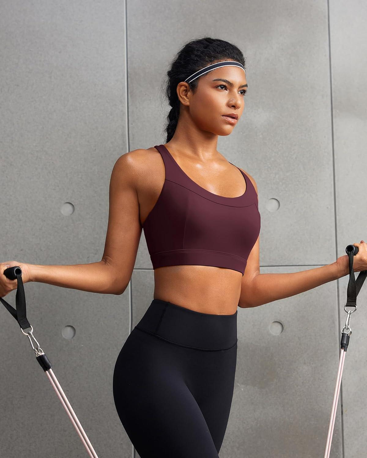 RUNNING GIRL Sports Bra for Women,Adjustable Straps Molded Cup High Impact Sports Bras for Women with Sewn in Pads(Maroon)