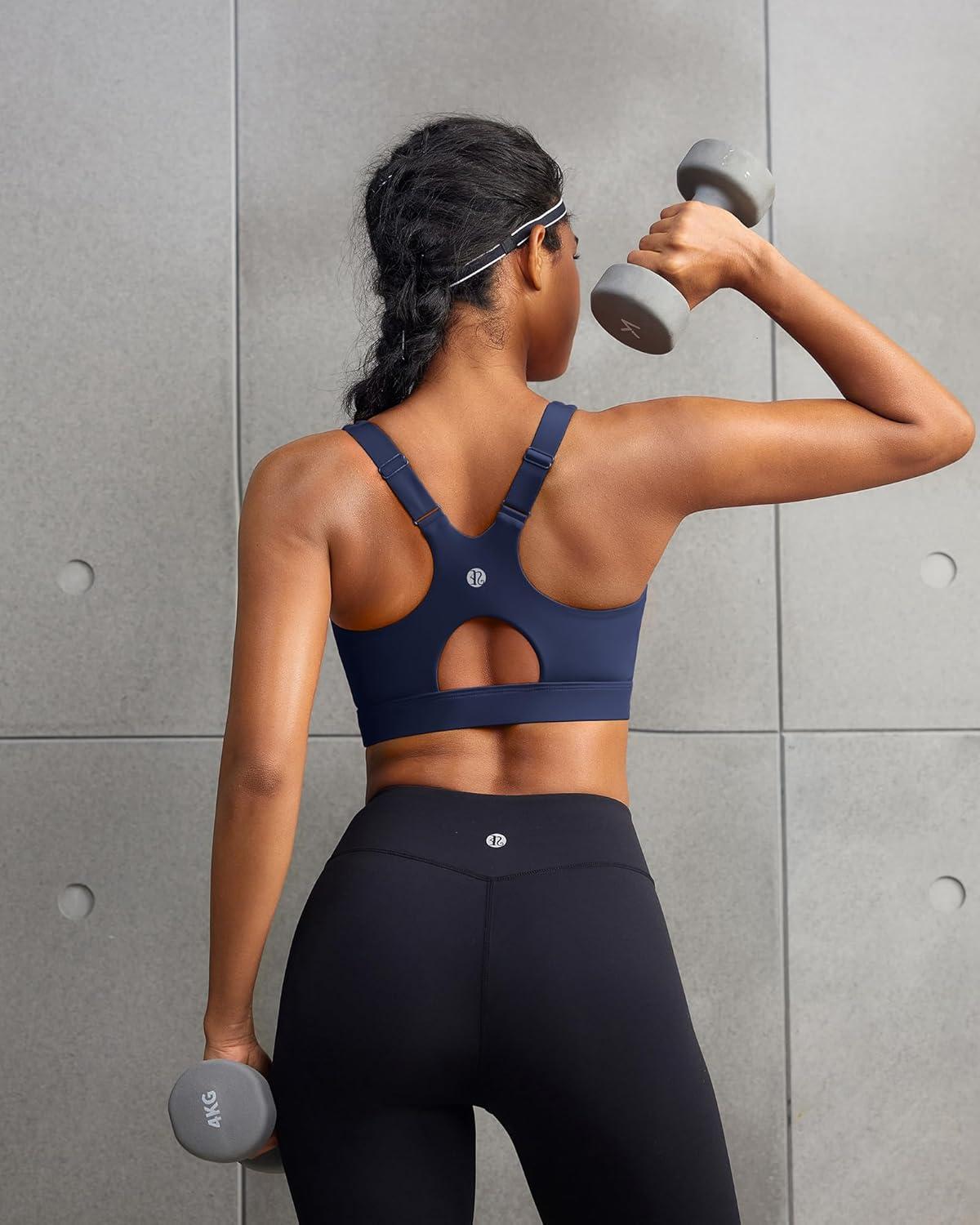 RUNNING GIRL Sports Bra for Women,Adjustable Straps Molded Cup High Impact Sports Bras for Women with Sewn in Pads(Navy Blue)