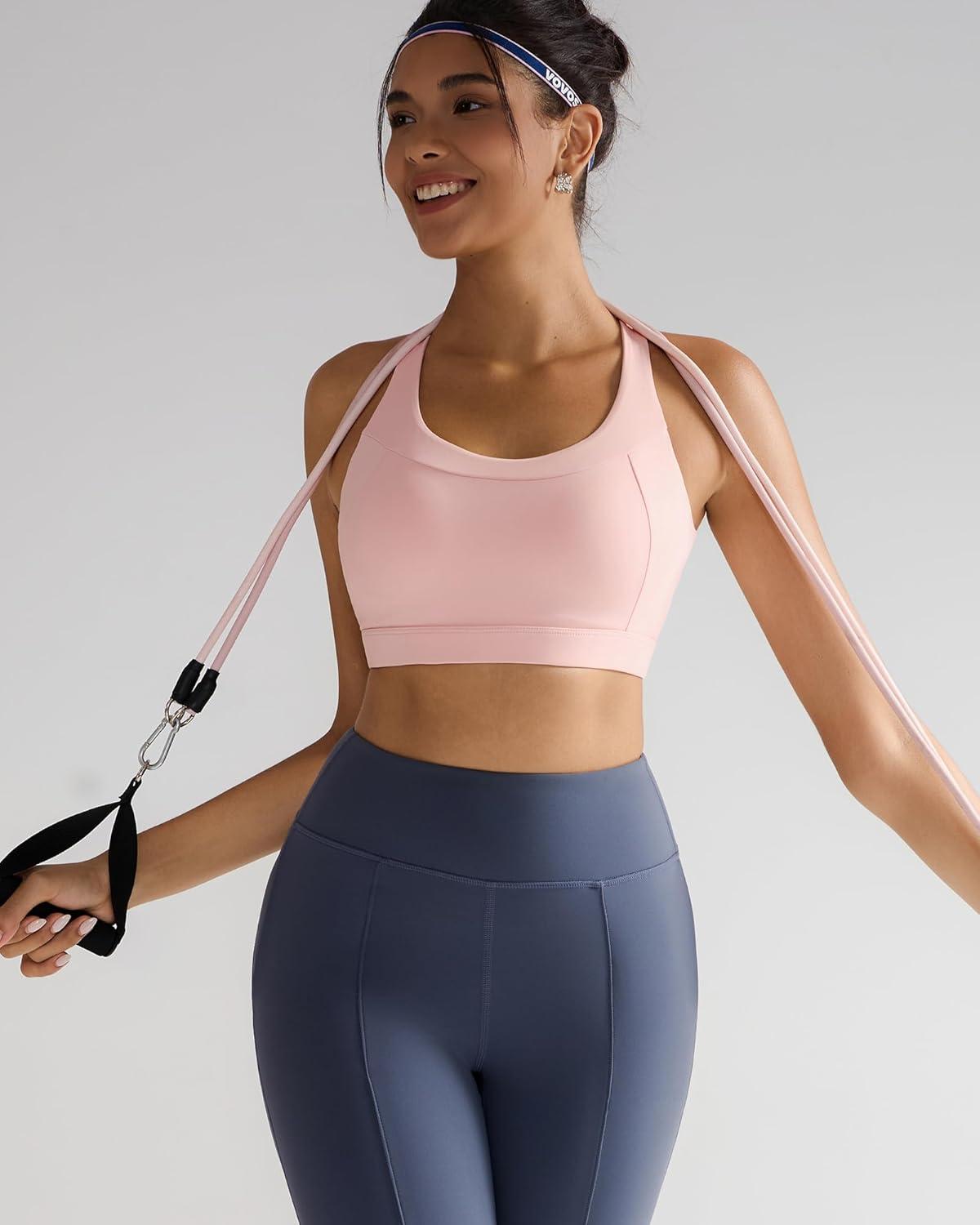 RUNNING GIRL Sports Bra for Women,Adjustable Straps Molded Cup High Impact Sports Bras for Women with Sewn in Pads(Pink)