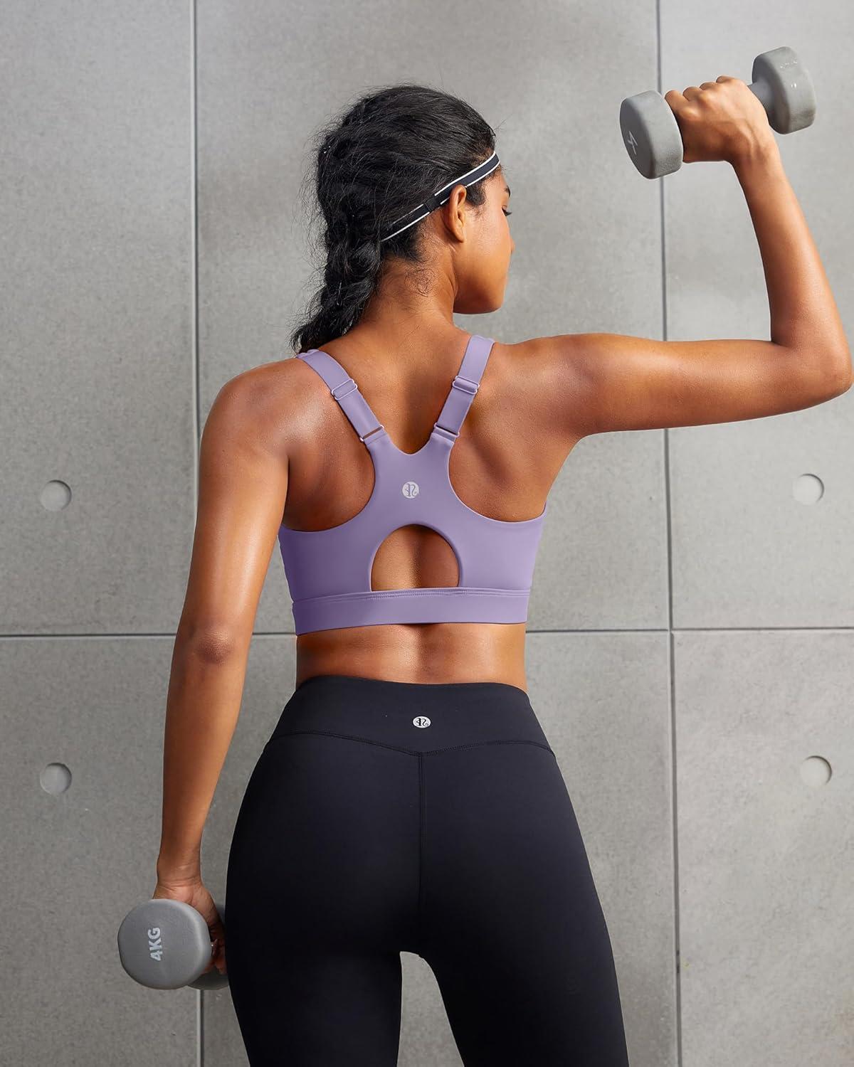 RUNNING GIRL Sports Bra for Women,Adjustable Straps Molded Cup High Impact Sports Bras for Women with Sewn in Pads(Purple)