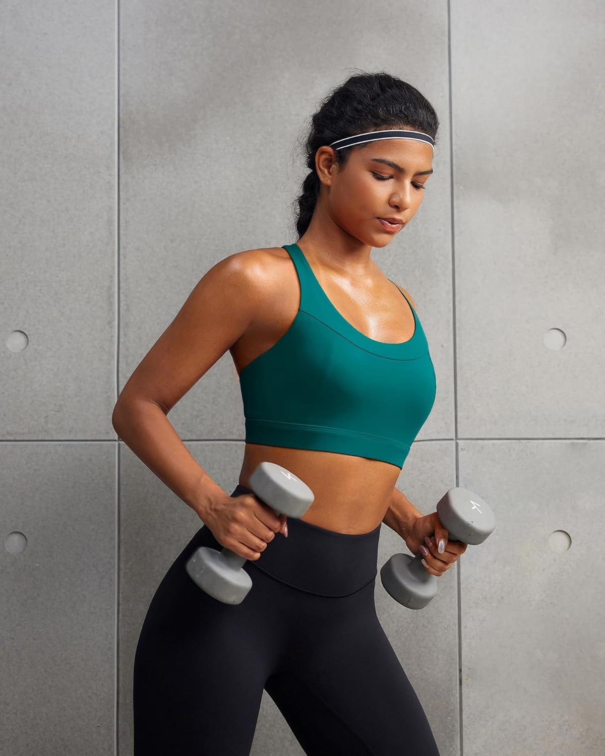 RUNNING GIRL Sports Bra for Women, Molded Cup High Impact Sports Bras for Women with Sewn in Pads(Teal)