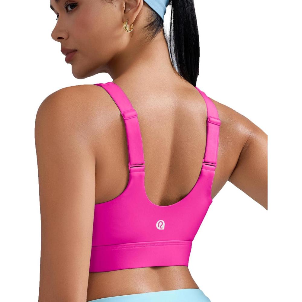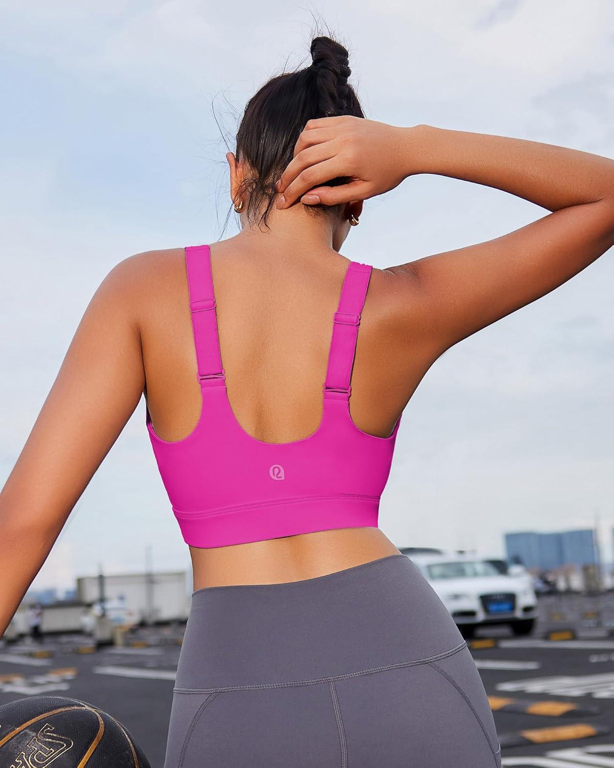 RUNNING GIRL Adjustable Straps High Impact Sports Bra for Women,High Support Workout Sports Bras with Sewn in Pads(A-hot Pink)