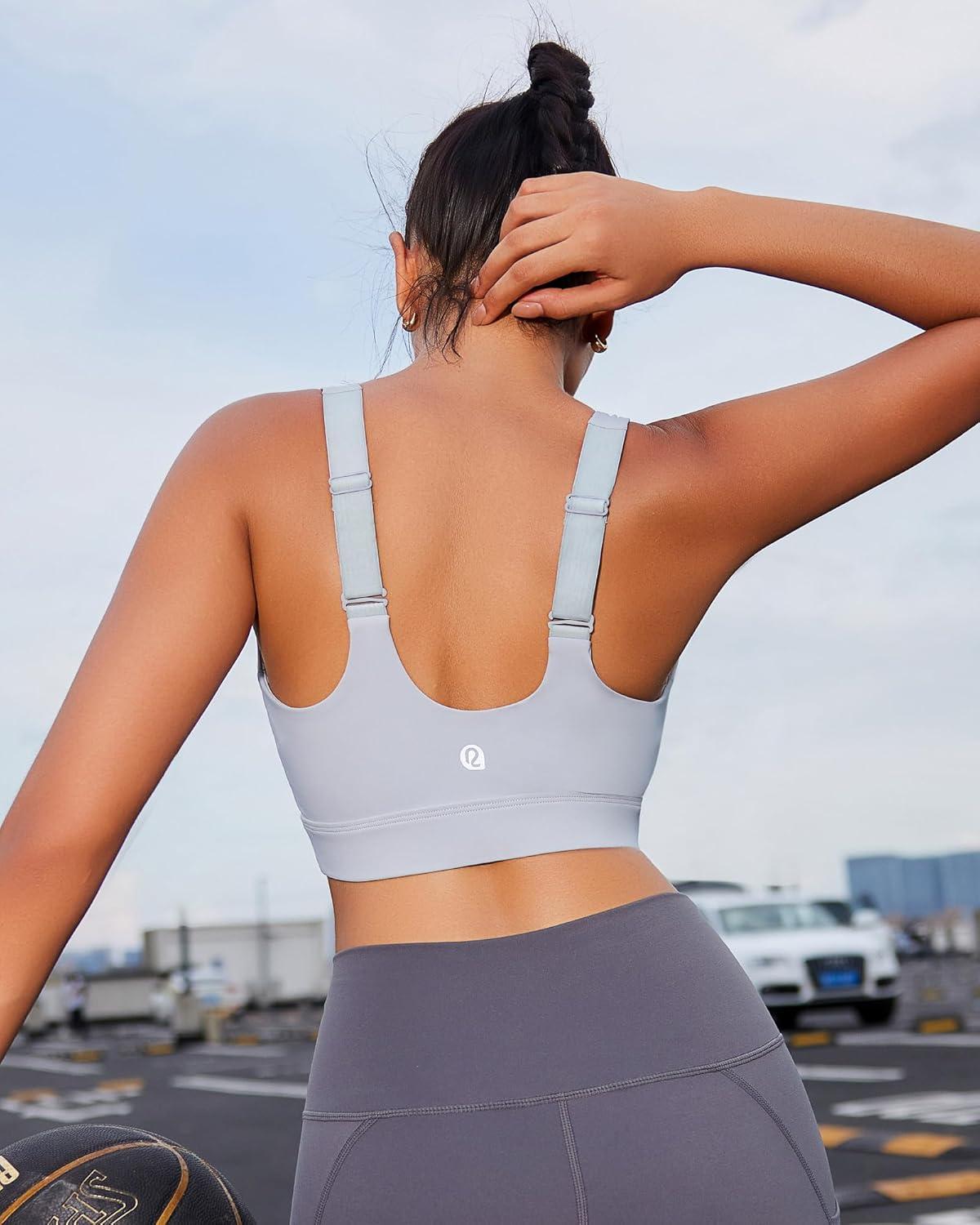 RUNNING GIRL Adjustable Straps High Impact Sports Bra for Women,High Support Workout Sports Bras with Sewn in Pads(A-icy Grey)