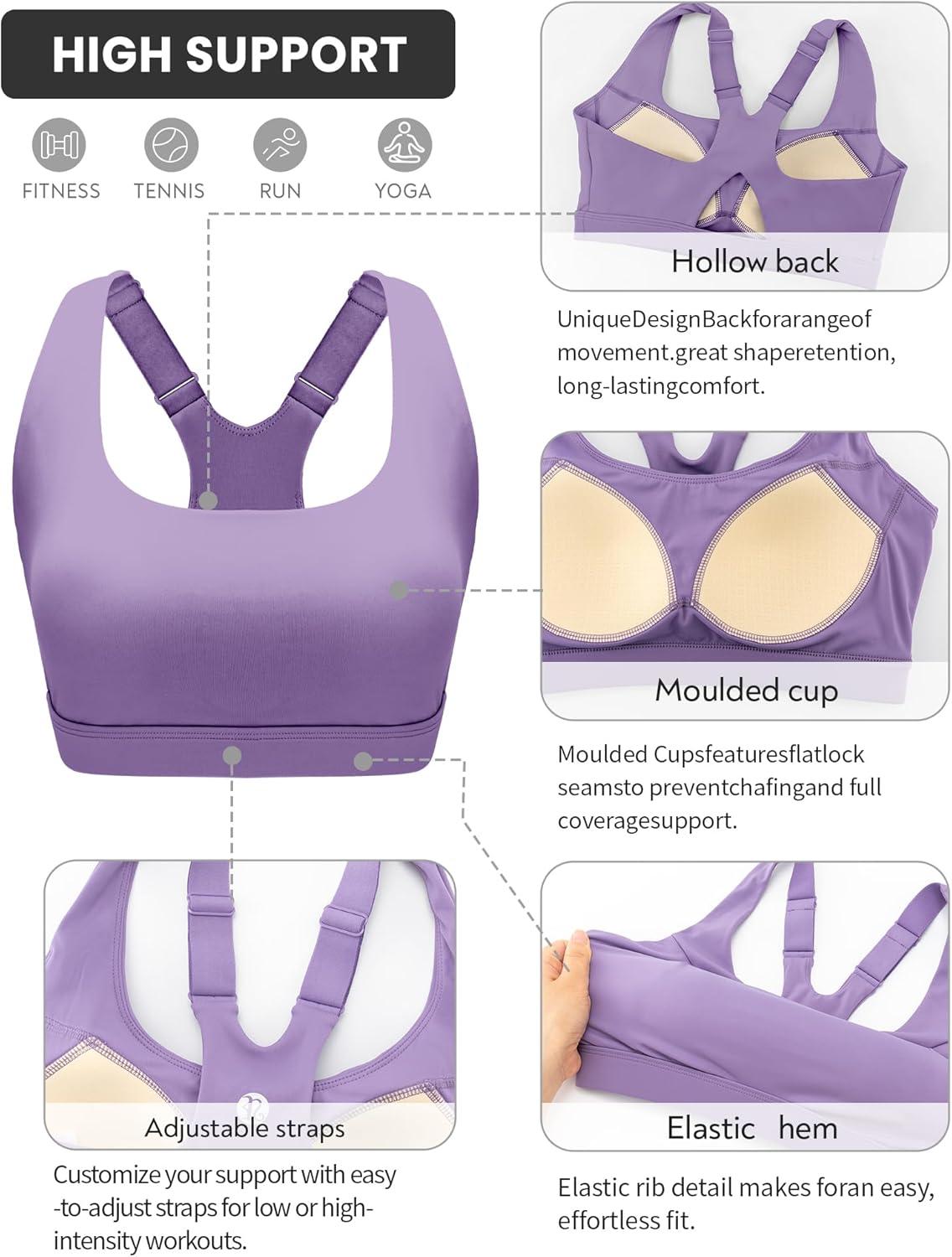 RUNNING GIRL High Impact Sports Bras for Women High Support Molded Cups, Adjustable Straps Sports Bra with Sewn in Pads(Purple)