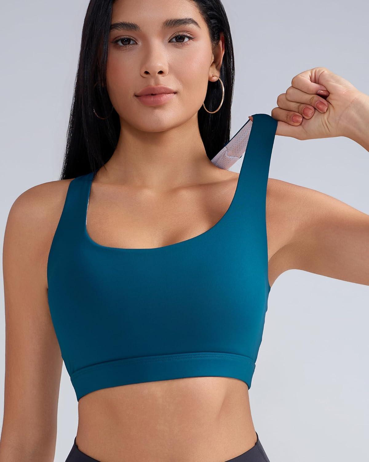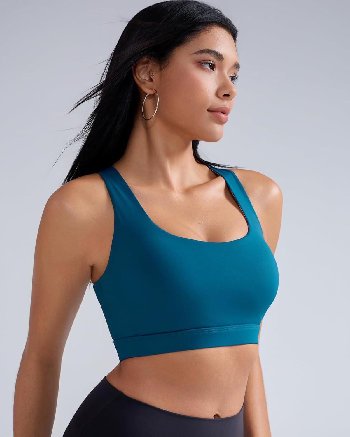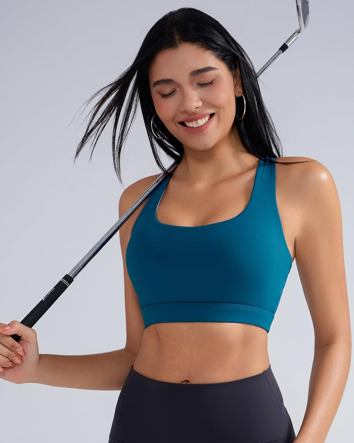 RUNNING GIRL High Impact Sports Bras for Women – Scoop Neck Strappy Sports Bra High Support Moulded Cup Workout Bra(A-black)