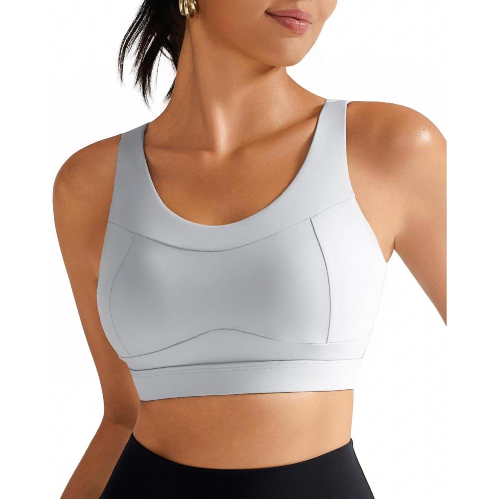 RUNNING GIRL High Impact Sports Bras for Women,Racerback Running Bra Workout Crop Tank Tops Longline Sports Bra Push up(D-ice Grey)