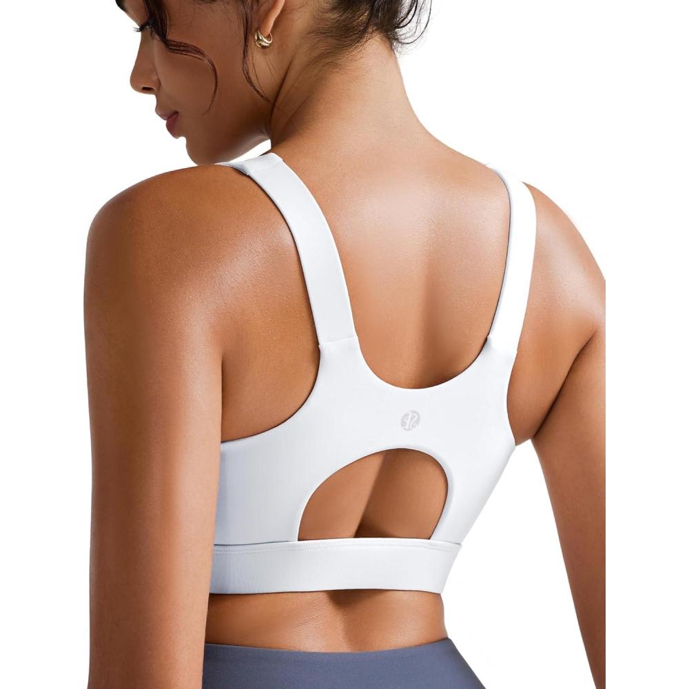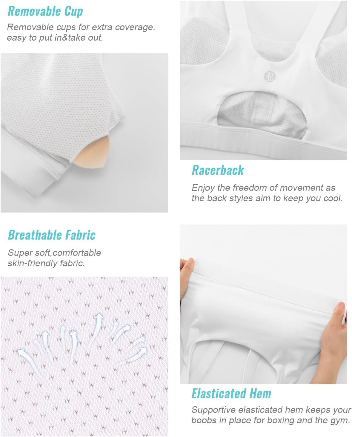 RUNNING GIRL High Impact Sports Bras for Women,Racerback Running Bra Workout Crop Tank Tops Longline Sports Bra Push up(Y-white)