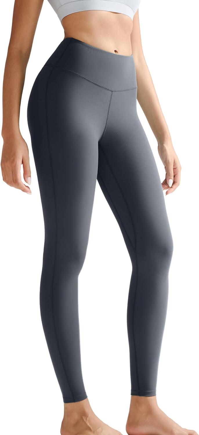 RUNNING GIRL No Front Seam Leggings for Women 25″ Inseam, High Waisted Seamless Buttery Soft Yoga Pants(Black)
