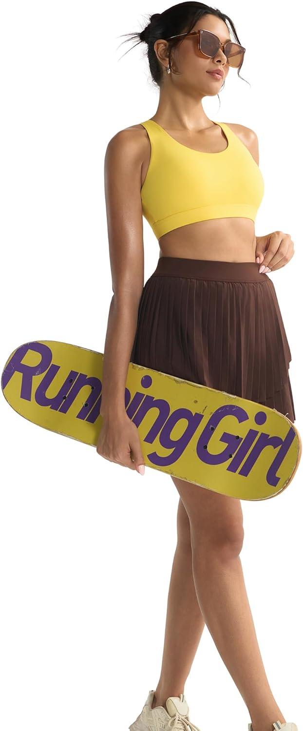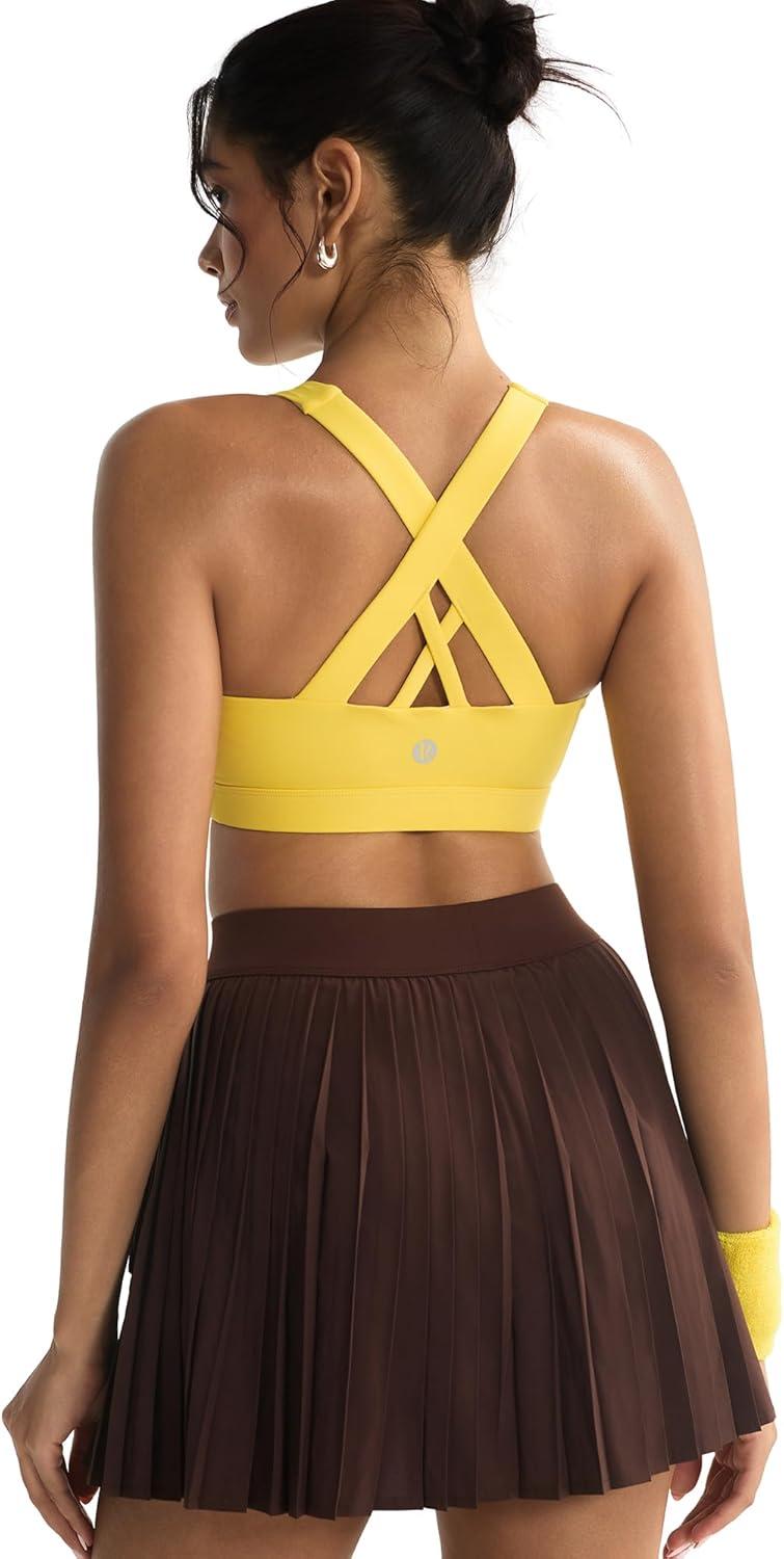 RUNNING GIRL Sports Bra for Women, Criss-Cross Back Padded Strappy Sports Bras Medium Support Yoga Bra with Removable Cups(A-bright Yellow)