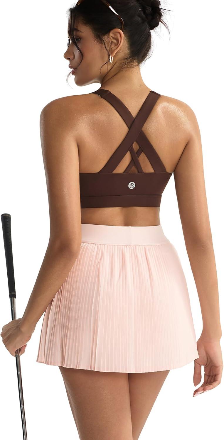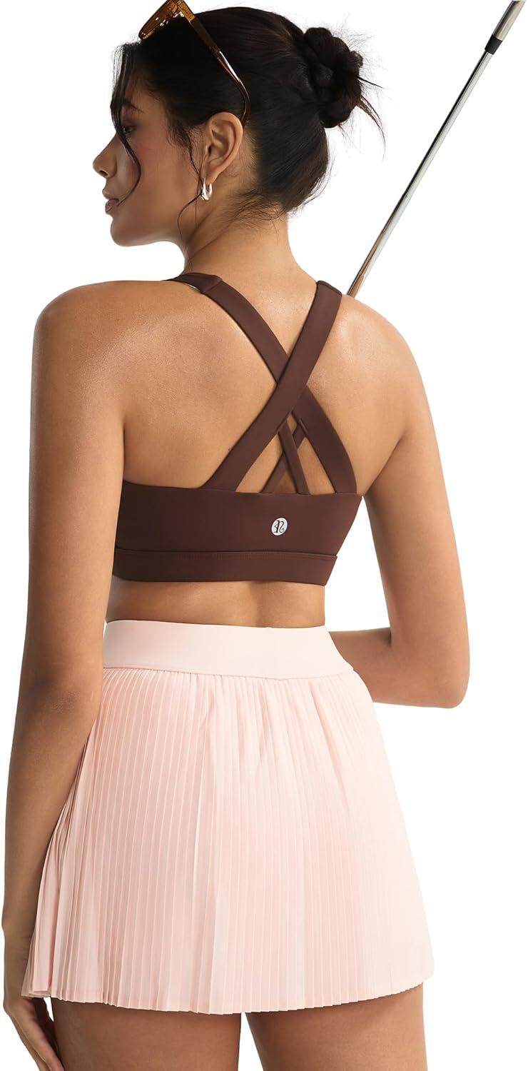 RUNNING GIRL Sports Bra for Women, Criss-Cross Back Padded Strappy Sports Bras Medium Support Yoga Bra with Removable Cups(A-coffee Bean)