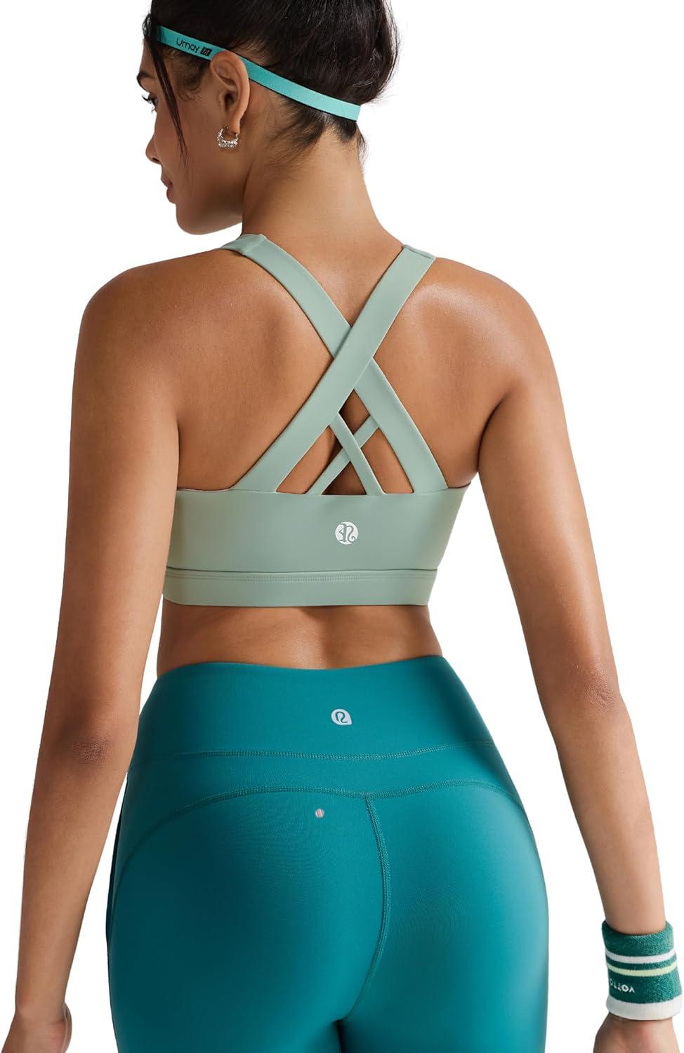 RUNNING GIRL Sports Bra for Women, Criss-Cross Back Padded Strappy Sports Bras Medium Support Yoga Bra with Removable Cups(A-green)