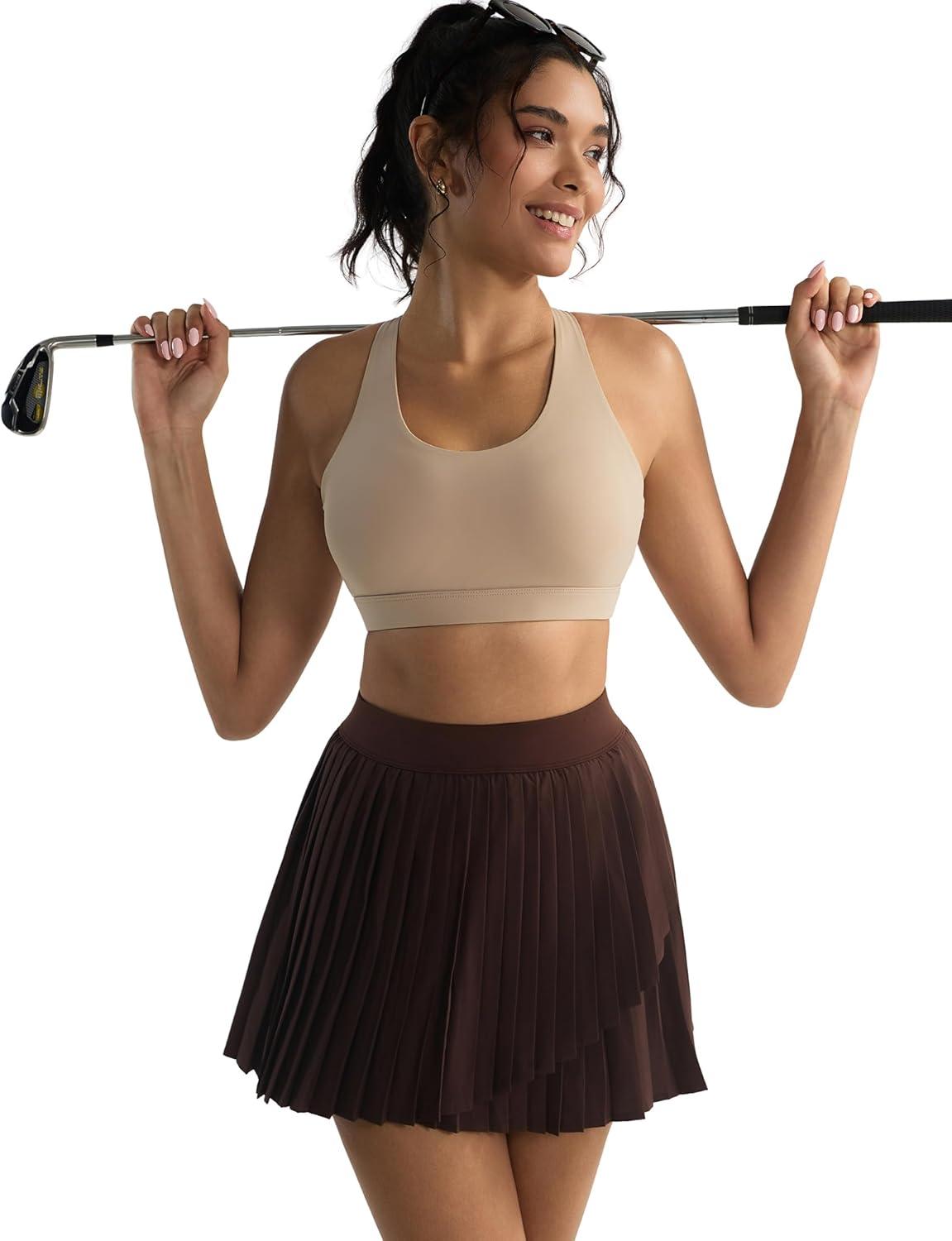 RUNNING GIRL Sports Bra for Women, Criss-Cross Back Padded Strappy Sports Bras Medium Support Yoga Bra with Removable Cups(A-nude)