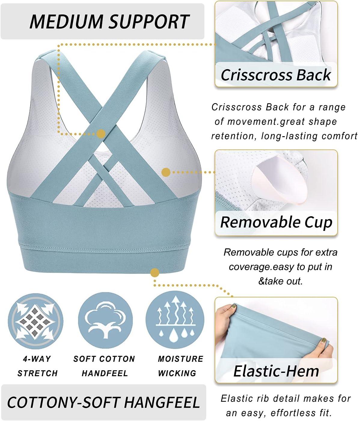 RUNNING GIRL Sports Bra for Women, Criss-Cross Back Padded Strappy Sports Bras Medium Support Yoga Bra with Removable Cups(A-opal Green)