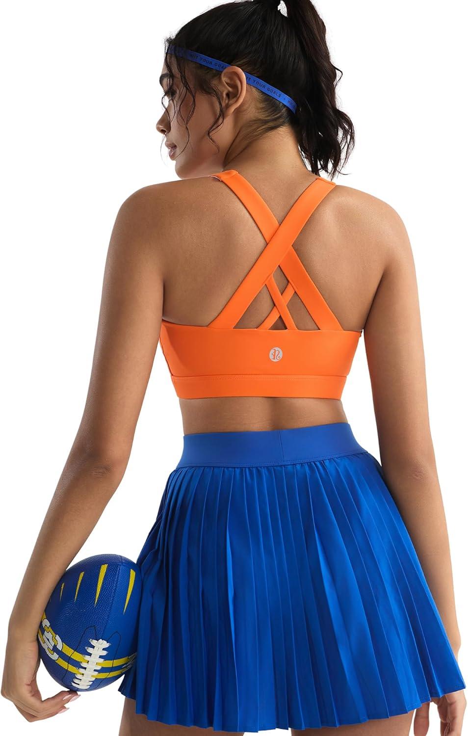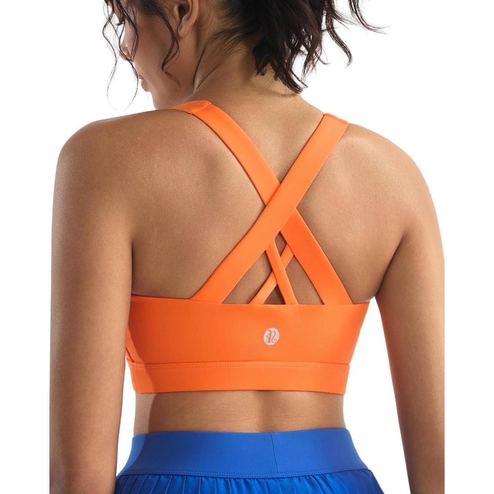 RUNNING GIRL Sports Bra for Women, Criss-Cross Back Padded Strappy Sports Bras Medium Support Yoga Bra with Removable Cups(A-orange)