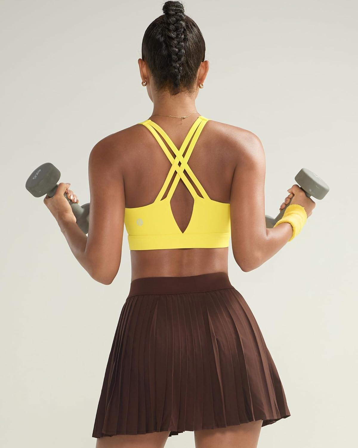 RUNNING GIRL Sports Bra for Women High Support, Molded Cup High Impact Sports Bras with Sewn in Pads Strappy Running Bra(Bright Yellow)