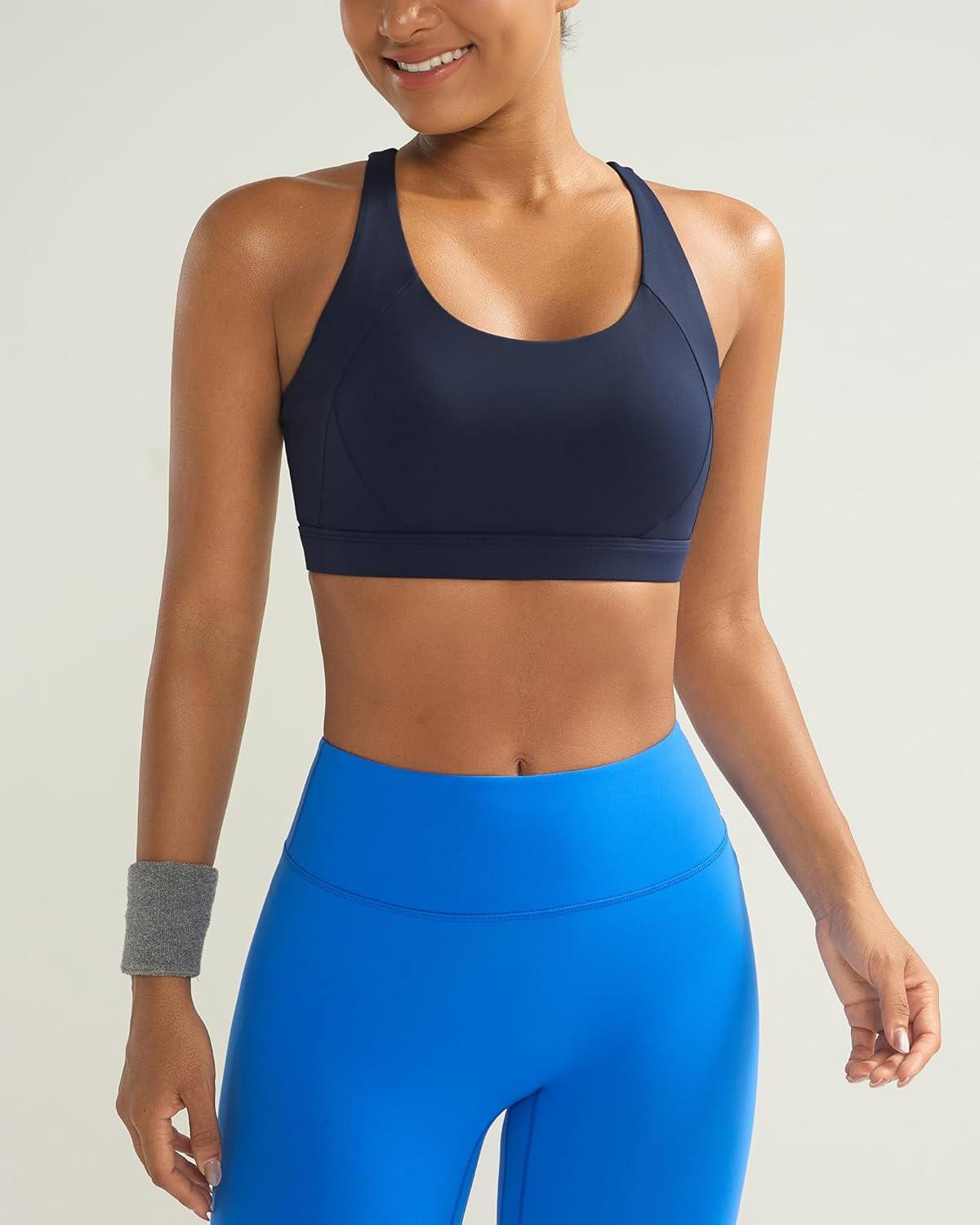 RUNNING GIRL Sports Bra for Women High Support,Molded Cup Strappy Running Sports Bras with Sewn in Pads(Navy Blue)