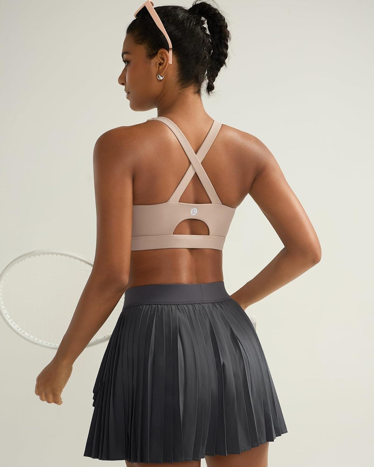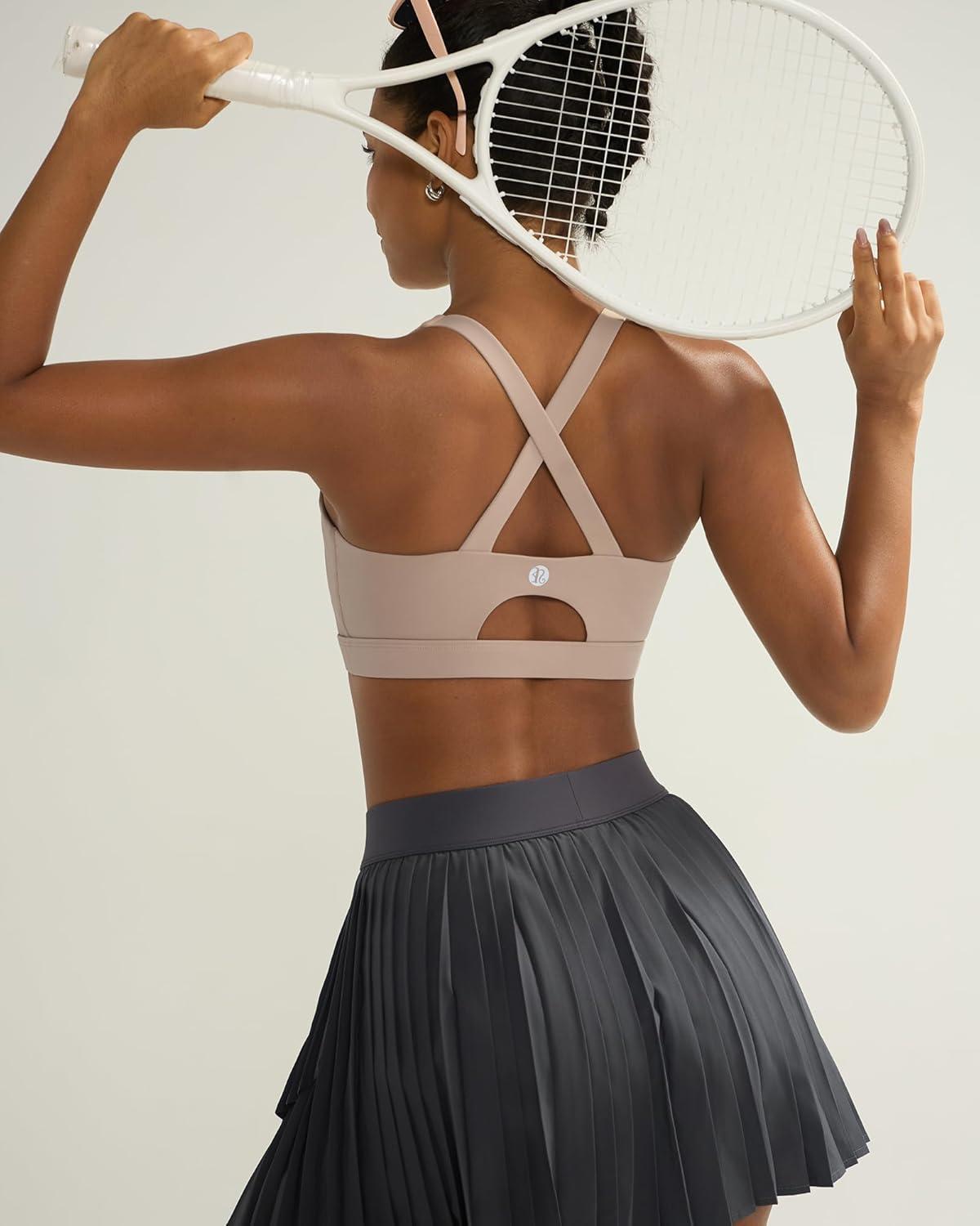 RUNNING GIRL Sports Bra for Women High Support,Molded Cup Strappy Running Sports Bras with Sewn in Pads(Nude)