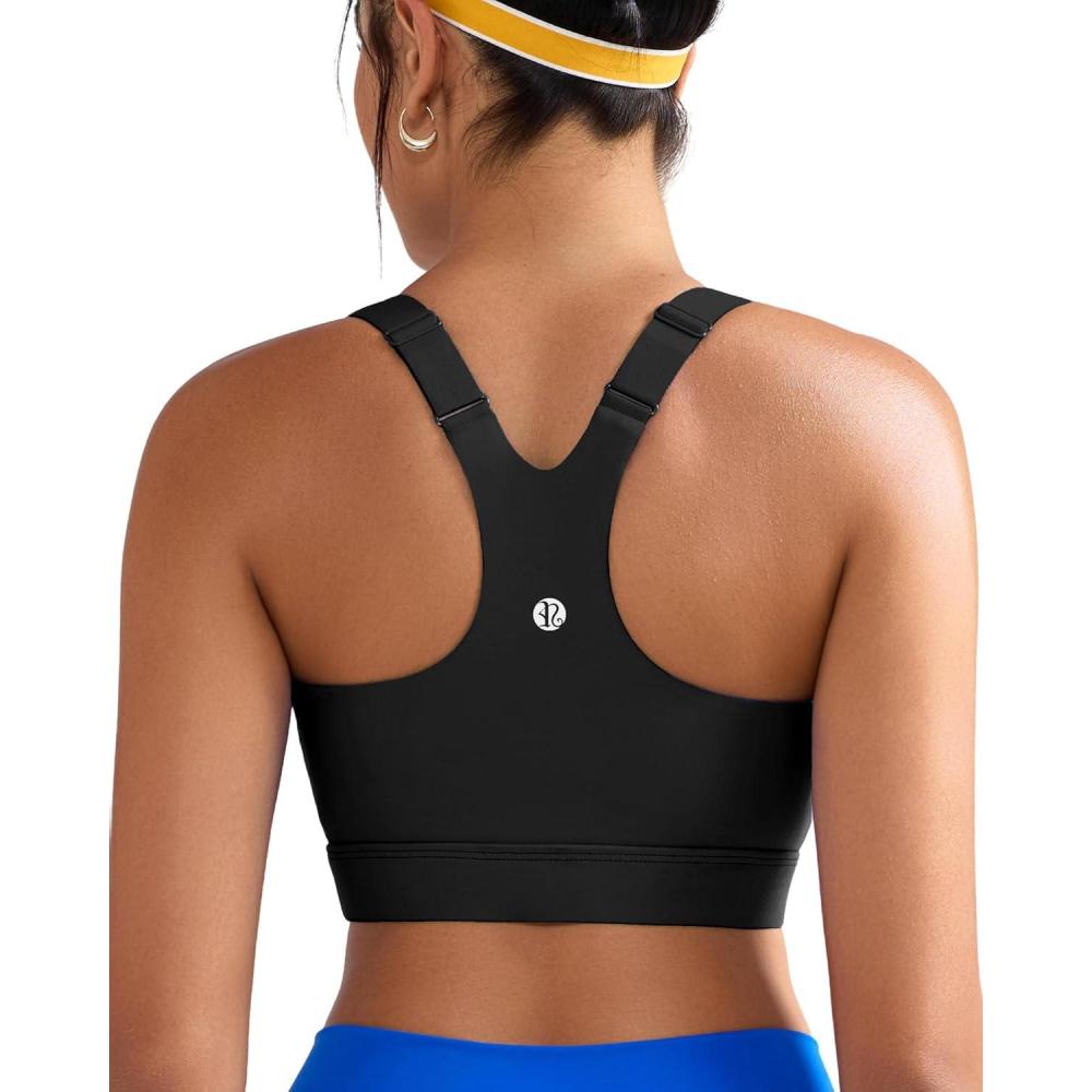 RUNNING GIRL Sports Bra for Women,Adjustable Straps Molded Cup High Impact Sports Bra with Sewn in Pads(Black)