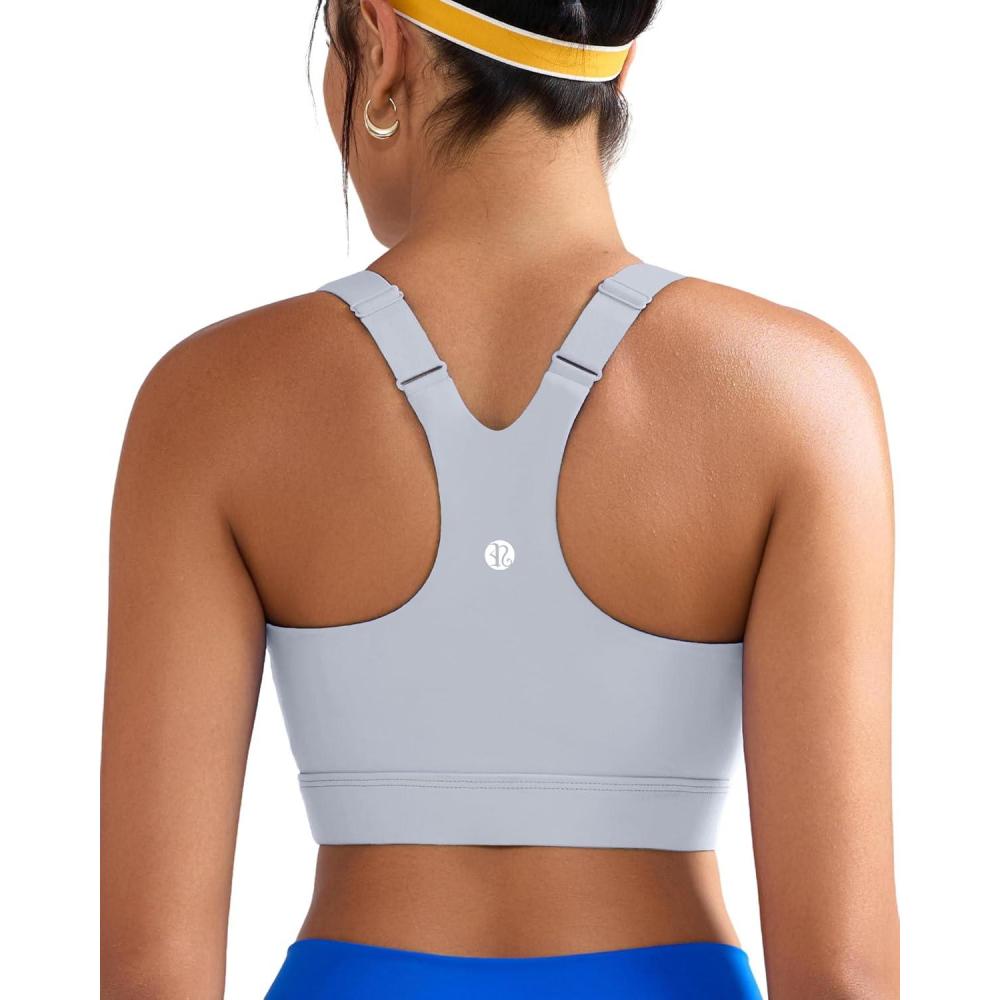 RUNNING GIRL Sports Bra for Women,Adjustable Straps Molded Cup High Impact Sports Bra with Sewn in Pads(Grey)