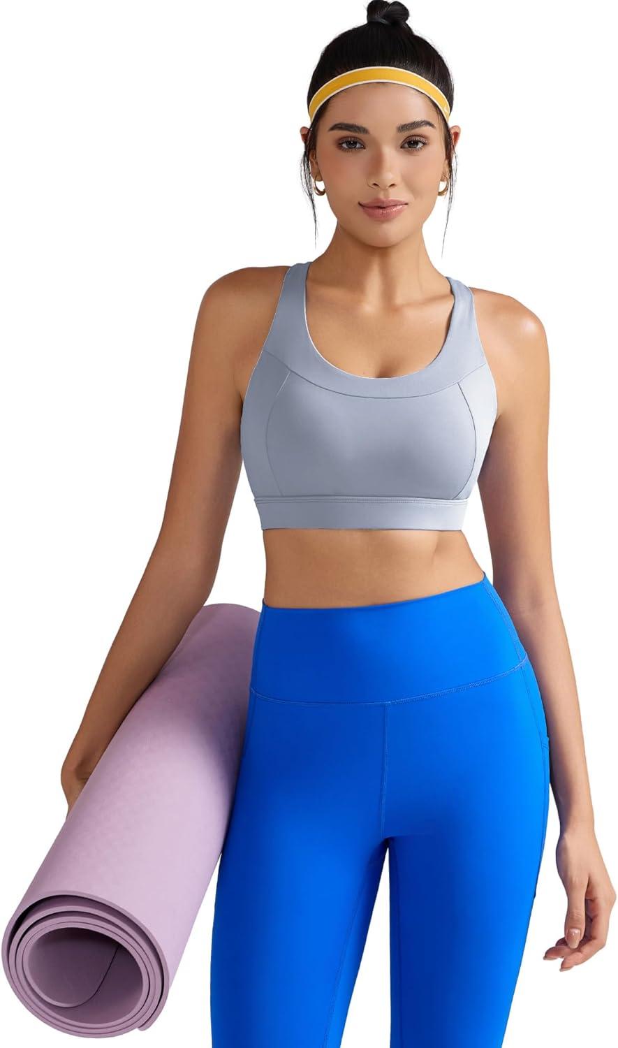 RUNNING GIRL Sports Bra for Women,Adjustable Straps Molded Cup High Impact Sports Bras for Women with Sewn in Pads(Grey)