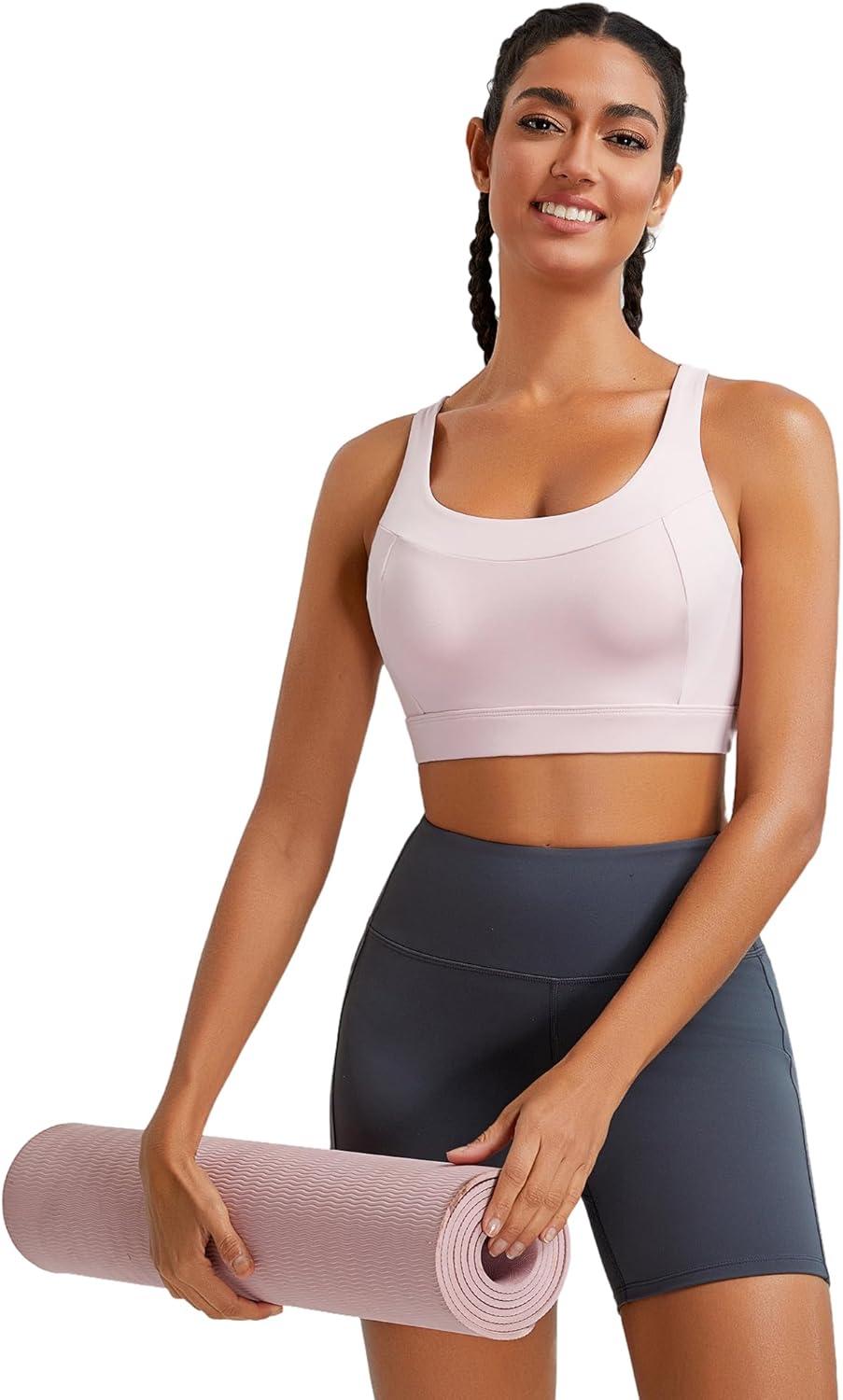 RUNNING GIRL Sports Bra for Women,Adjustable Straps Molded Cup High Impact Sports Bras for Women with Sewn in Pads(Pink)