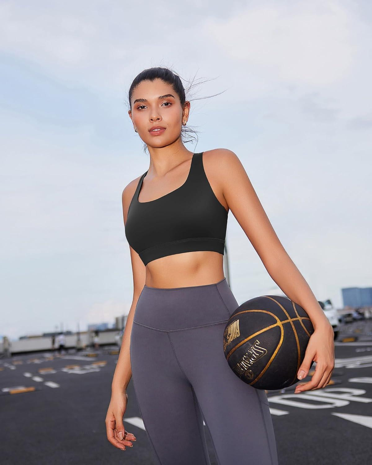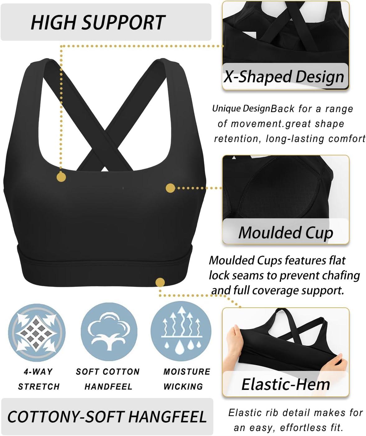RUNNING GIRL Sports Bra for Women,Molded Cup Strappy Running High Impact Sports Bra with Sewn in Pads(Black)