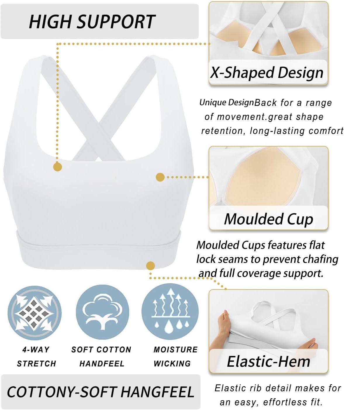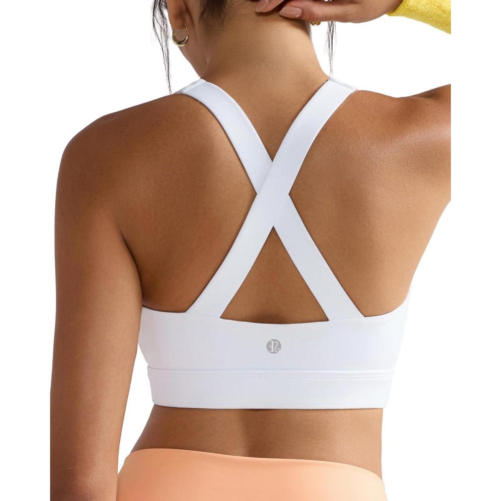 RUNNING GIRL Sports Bra for Women,Molded Cup Strappy Running High Impact Sports Bra with Sewn in Pads(White)