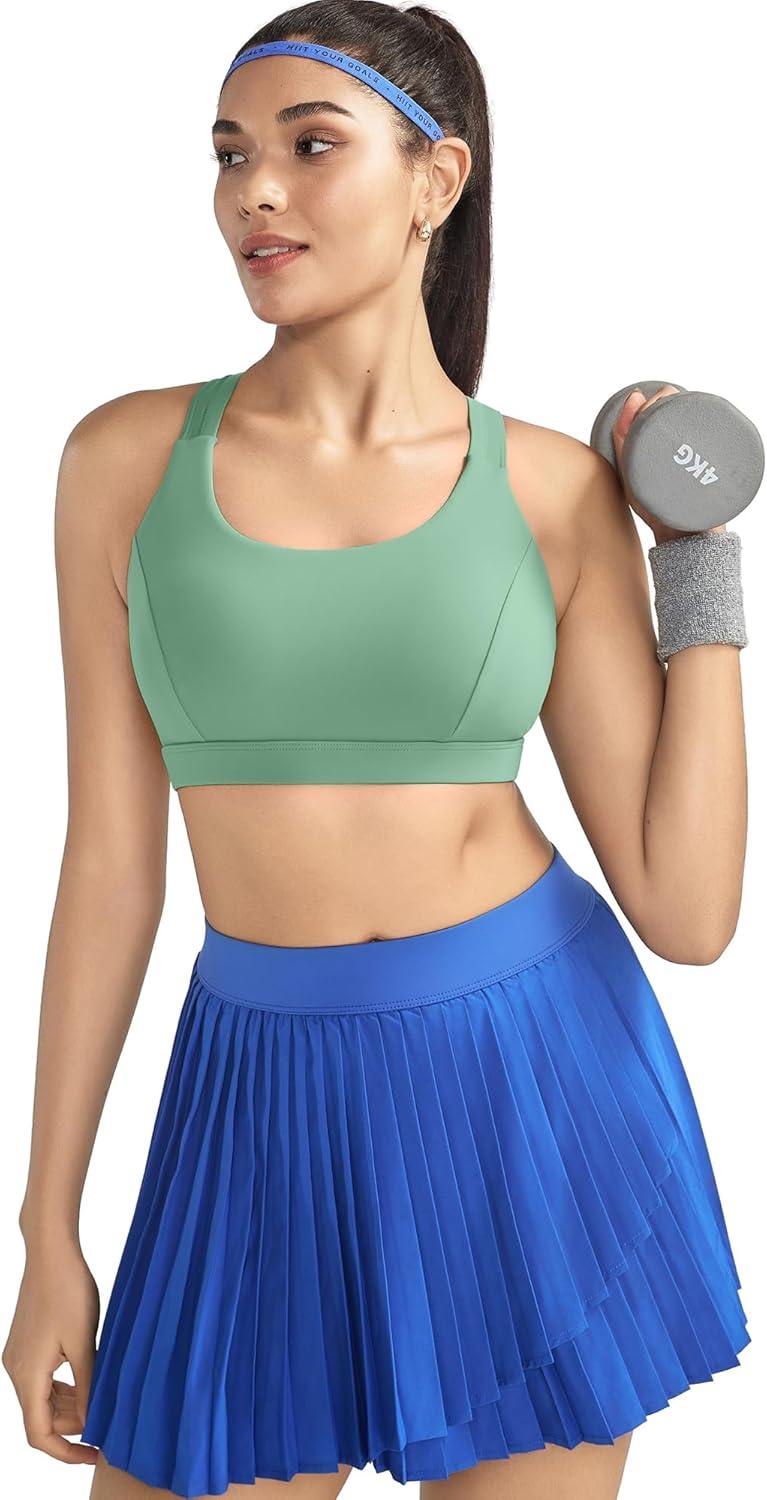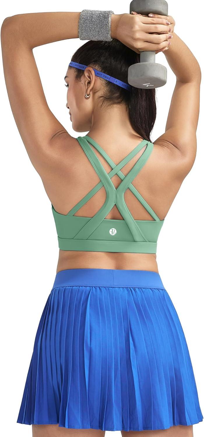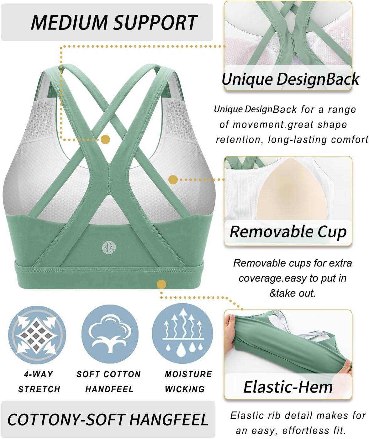 RUNNING GIRL Sports Bras for Women, Criss-Cross Back Padded Strappy Sports Bras Medium Support Yoga Bra with Removable Cups