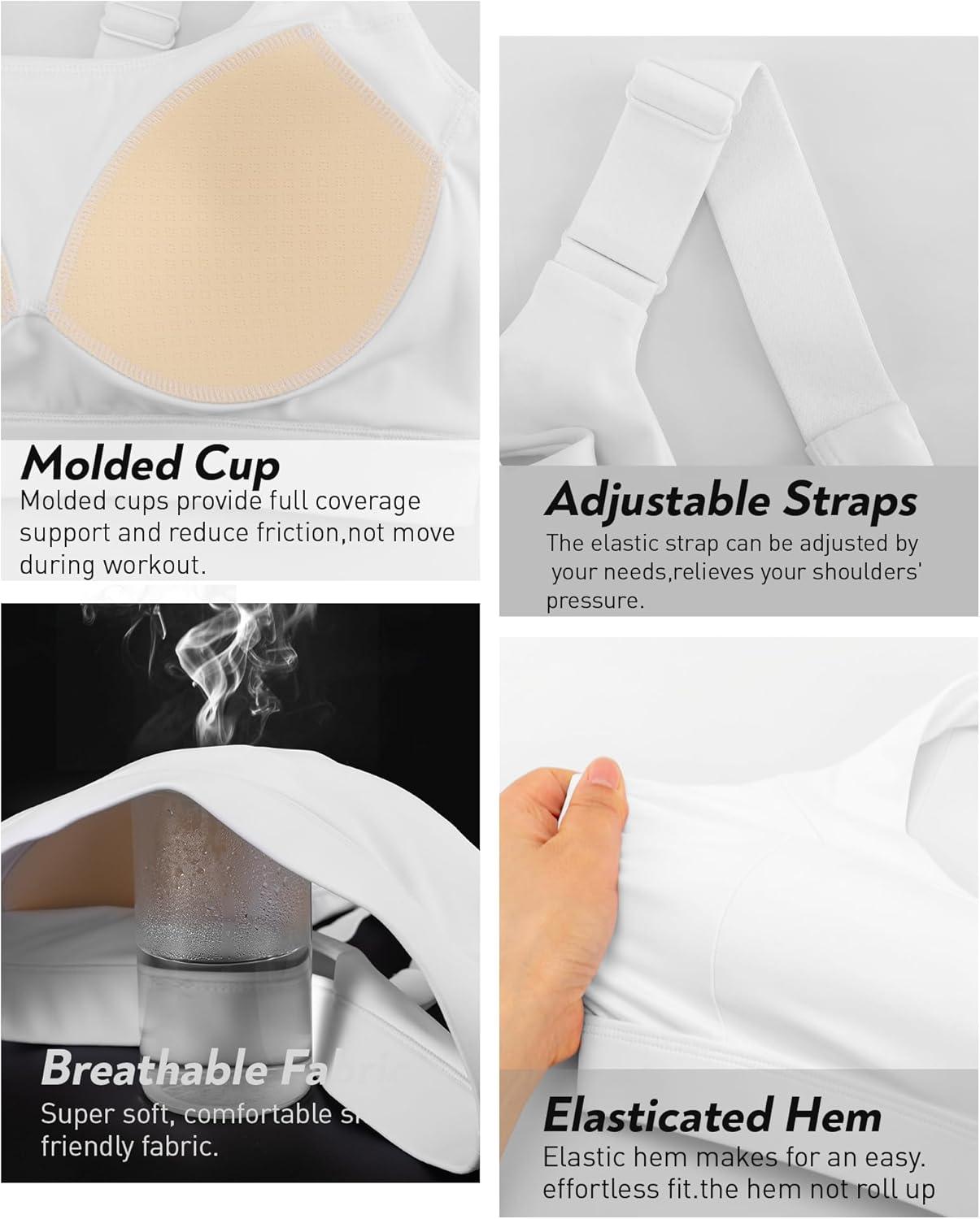 RUNNING GIRL Sports Bras for Women High Support, Adjustable Straps High Impact Molded Cup Sports Bra with Sewn in Pads(White)