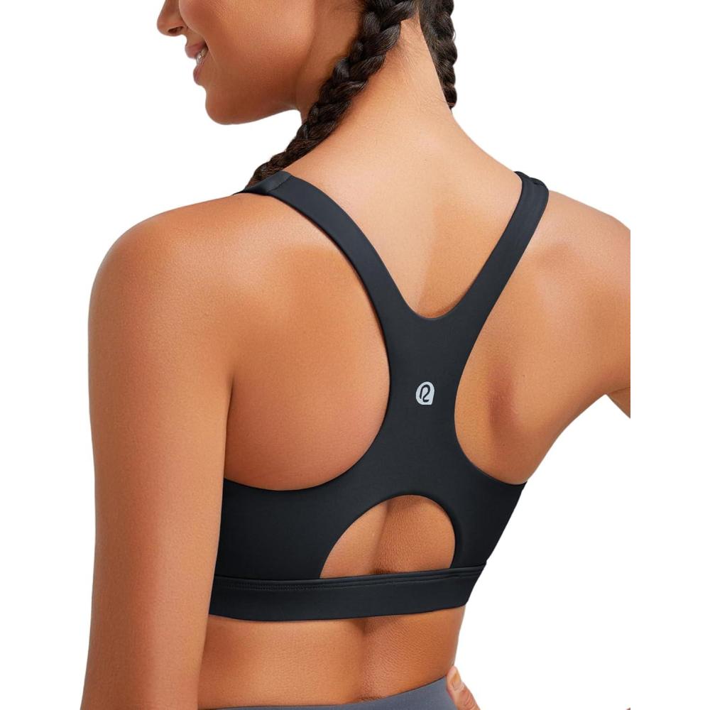 RUNNING GIRL Sports Bras for Women High Support,Racerback High Impact Grey Sports Bra Moulded Cup Workout Bra Push up(D-black)