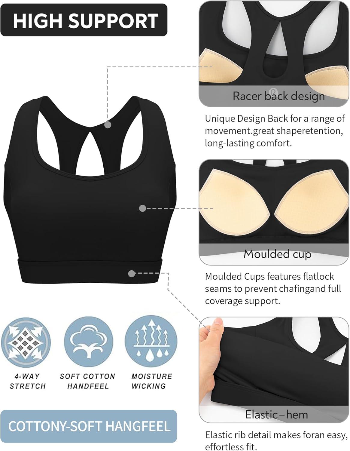 RUNNING GIRL Sports Bras for Women High Support,Racerback Molded Cup Sports Bra with Sewn in Pads Workout Running Bra(A-black)