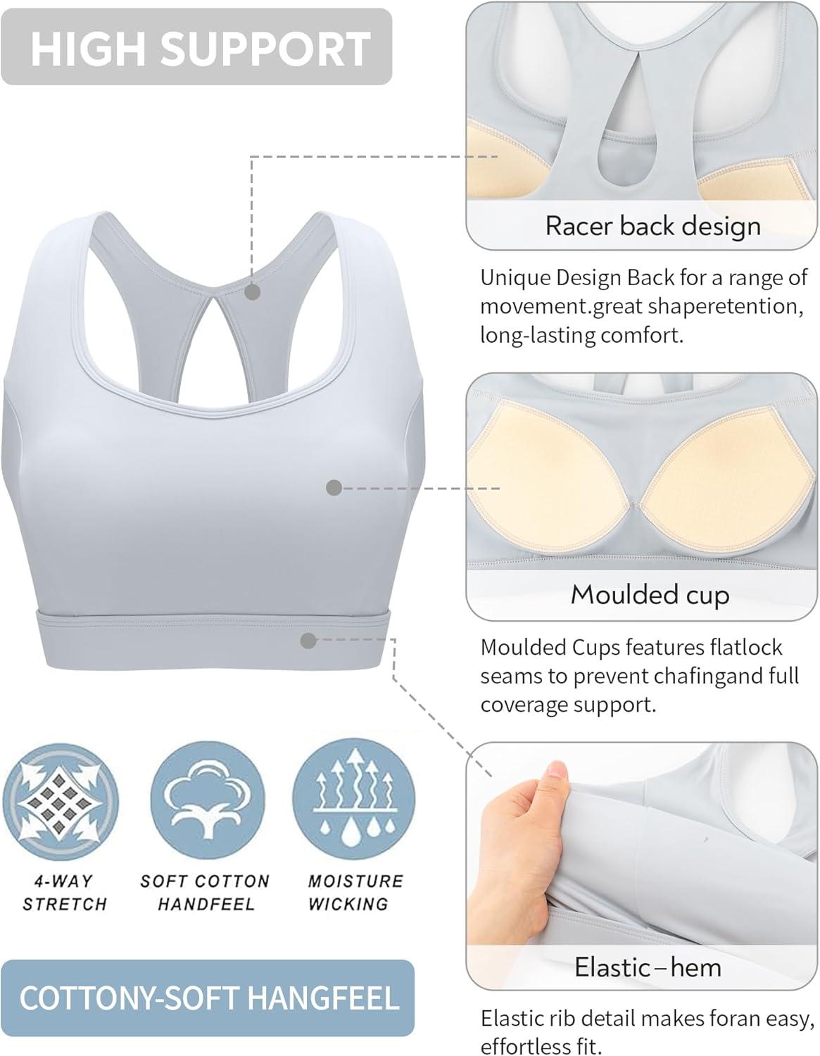 RUNNING GIRL Sports Bras for Women High Support,Racerback Molded Cup Sports Bra with Sewn in Pads Workout Running Bra(A-grey)