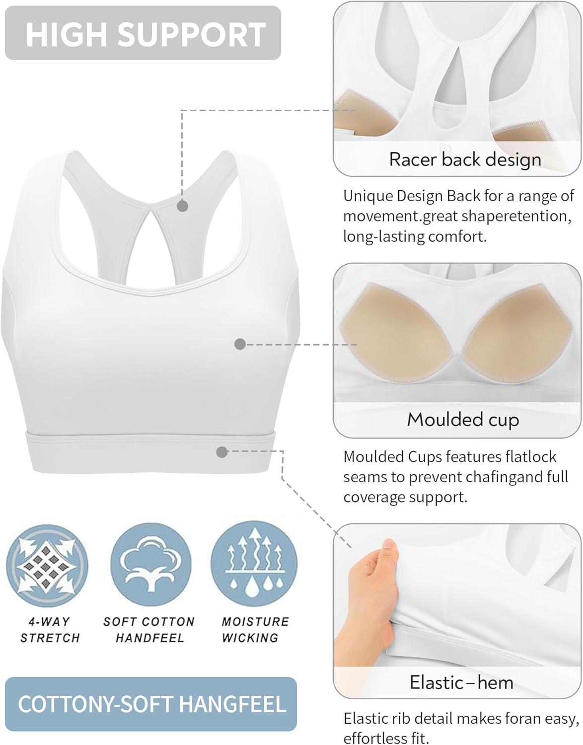 RUNNING GIRL Sports Bras for Women High Support,Racerback Molded Cup Sports Bra with Sewn in Pads Workout Running Bra(A-white)