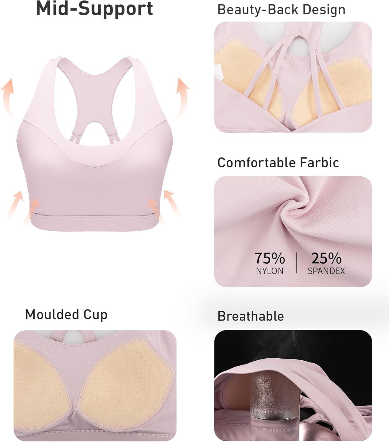 RUNNING GIRL Sports Bras for Women High Support,Racerback Molded Cup Sports Bra with Sewn in Pads Workout Running Bra(B-soft Pink)