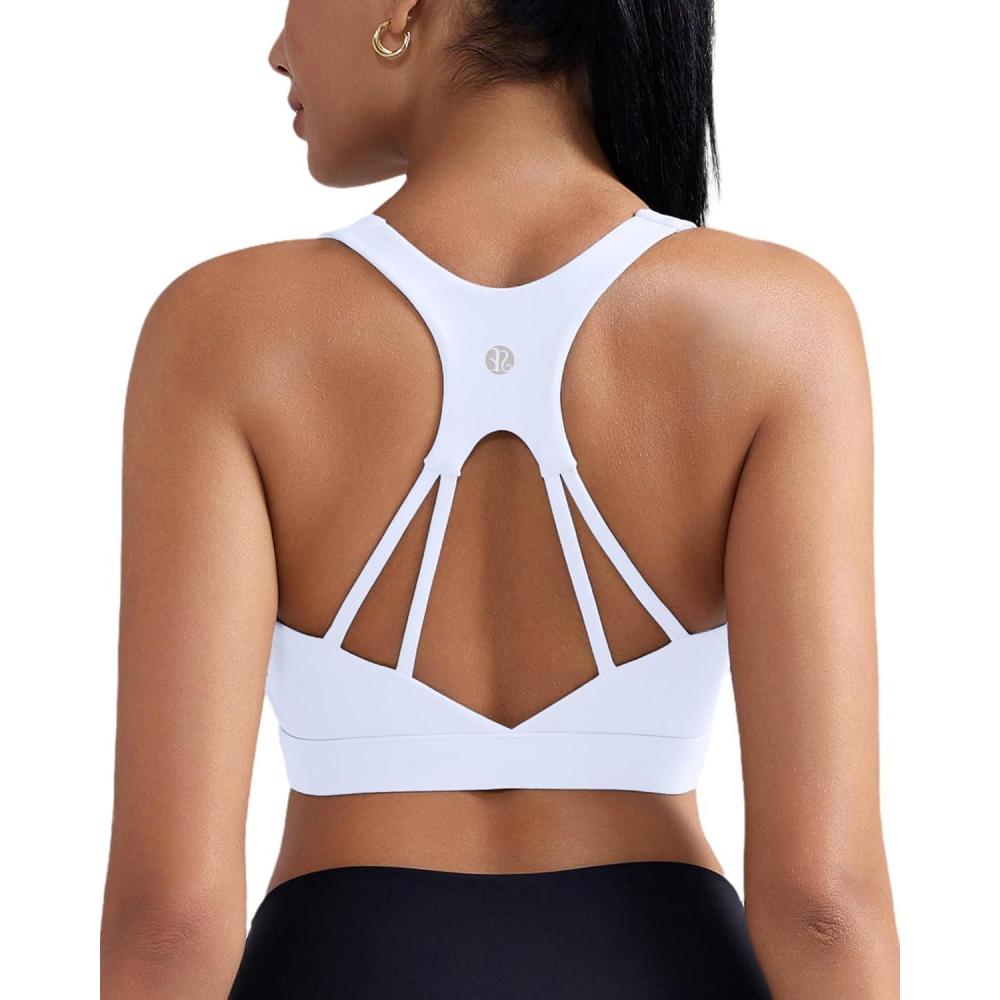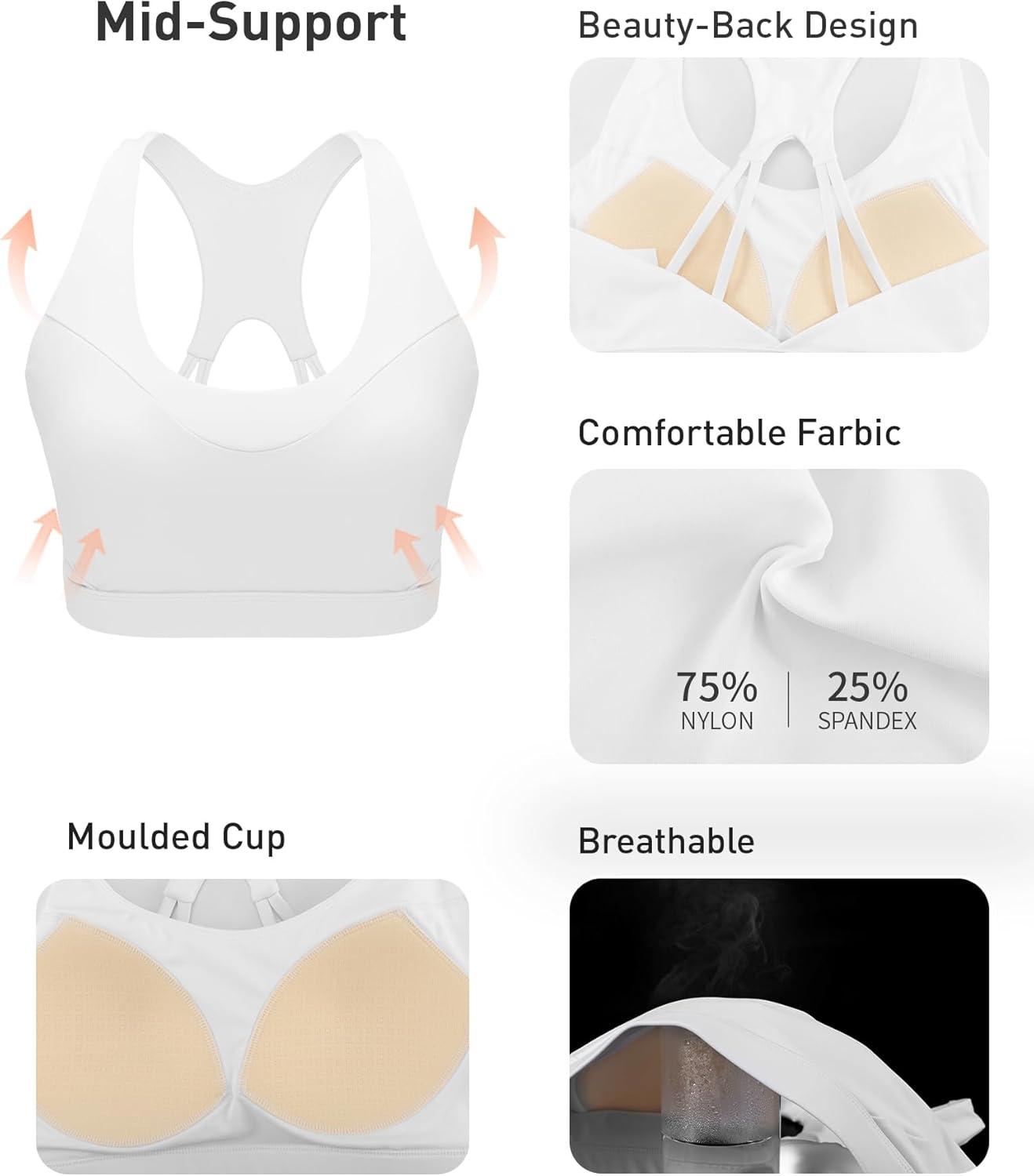 RUNNING GIRL Sports Bras for Women High Support,Racerback Molded Cup Sports Bra with Sewn in Pads Workout Running Bra(B-white)