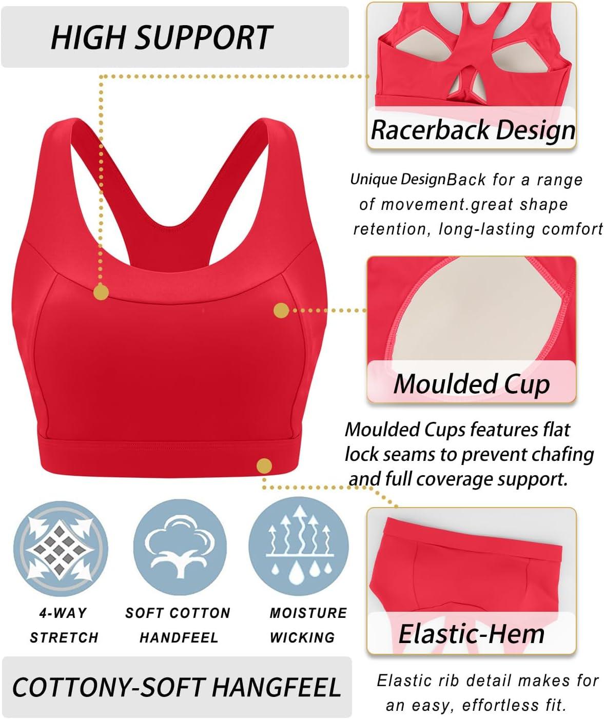 RUNNING GIRL Sports Bras for Women High Support,Racerback Molded Cup Sports Bra with Sewn in Pads(A-deep Red)