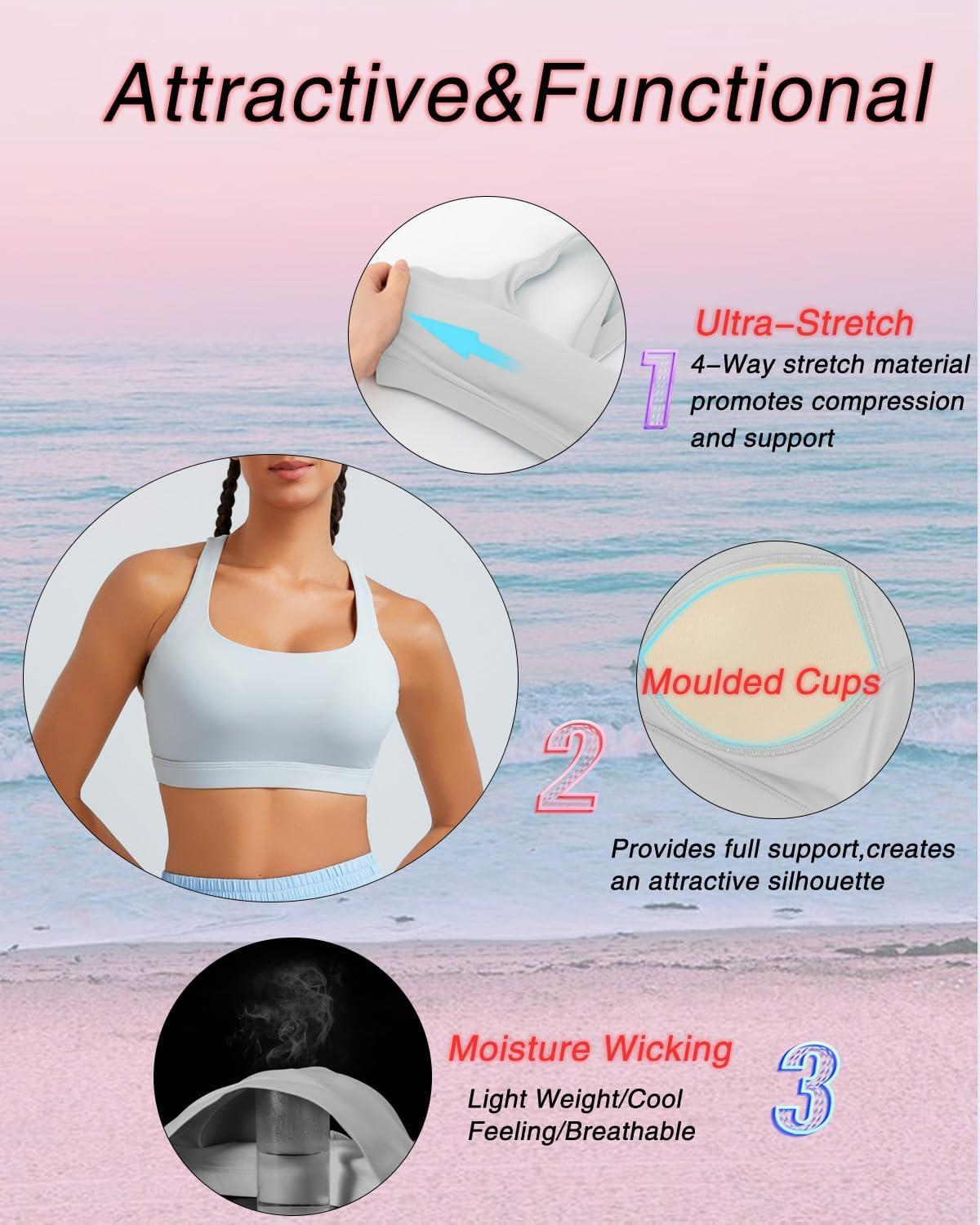 RUNNING GIRL Sports Bras for Women High Support,Racerback Molded Cup Sports Bra with Sewn in Pads(A-ice Grey)