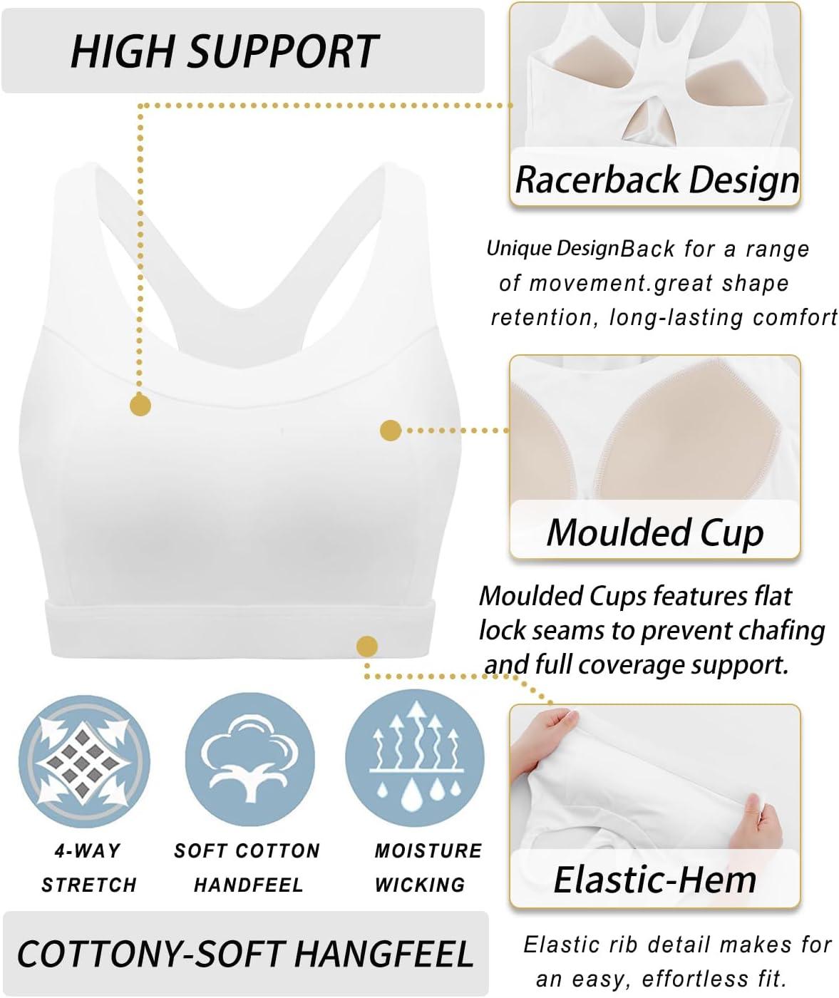 RUNNING GIRL Sports Bras for Women High Support,Racerback Molded Cup Sports Bra with Sewn in Pads(A-white)