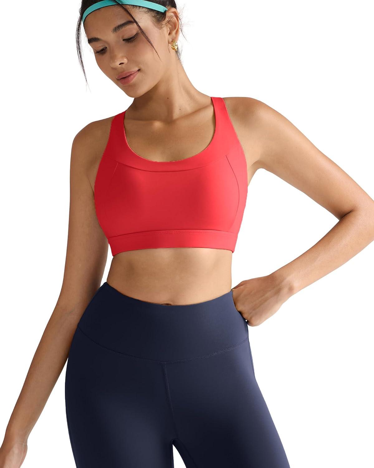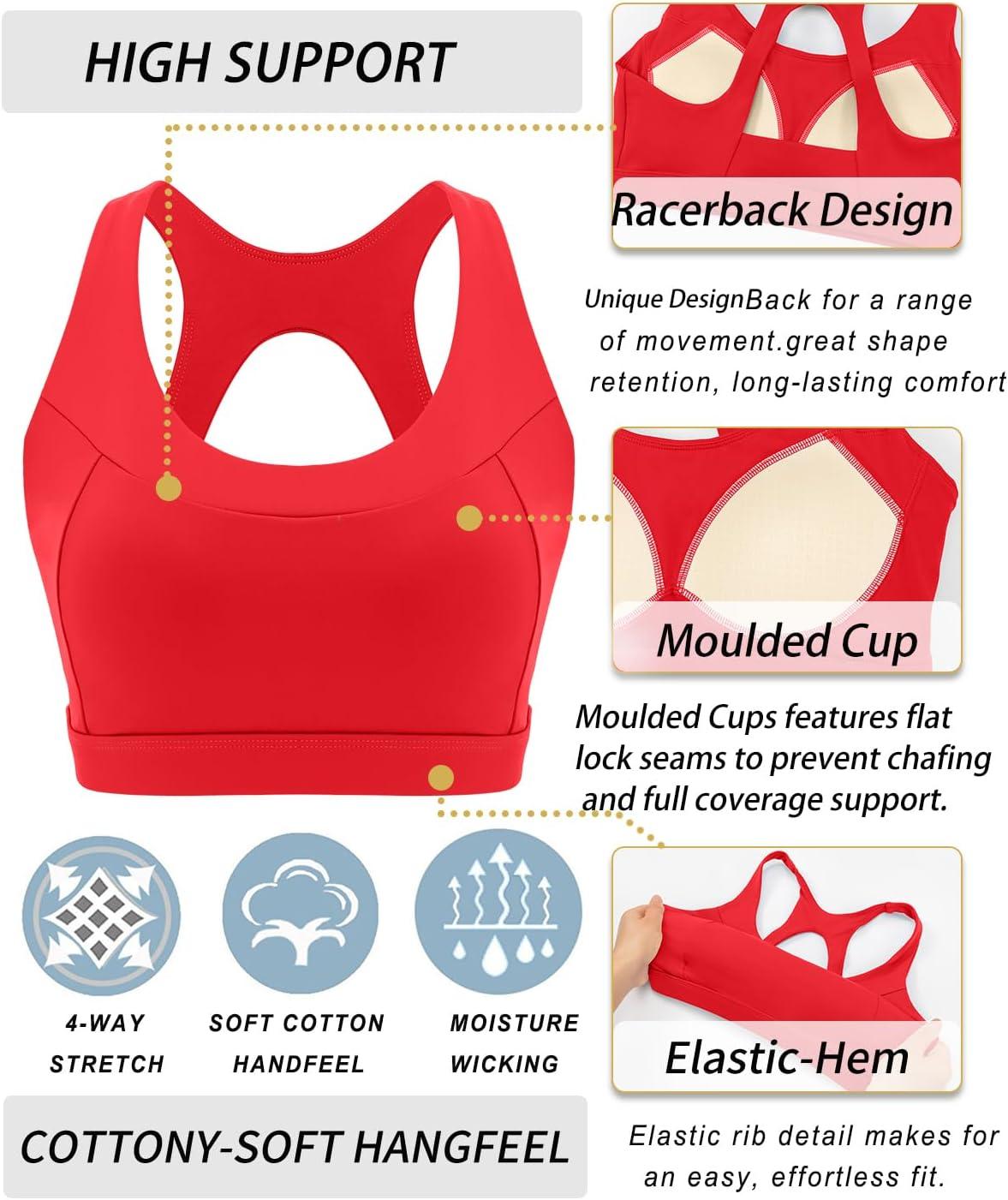 RUNNING GIRL Sports Bras for Women High Support,Racerback Molded Cup Sports Bra with Sewn in Pads(B-deep Red)