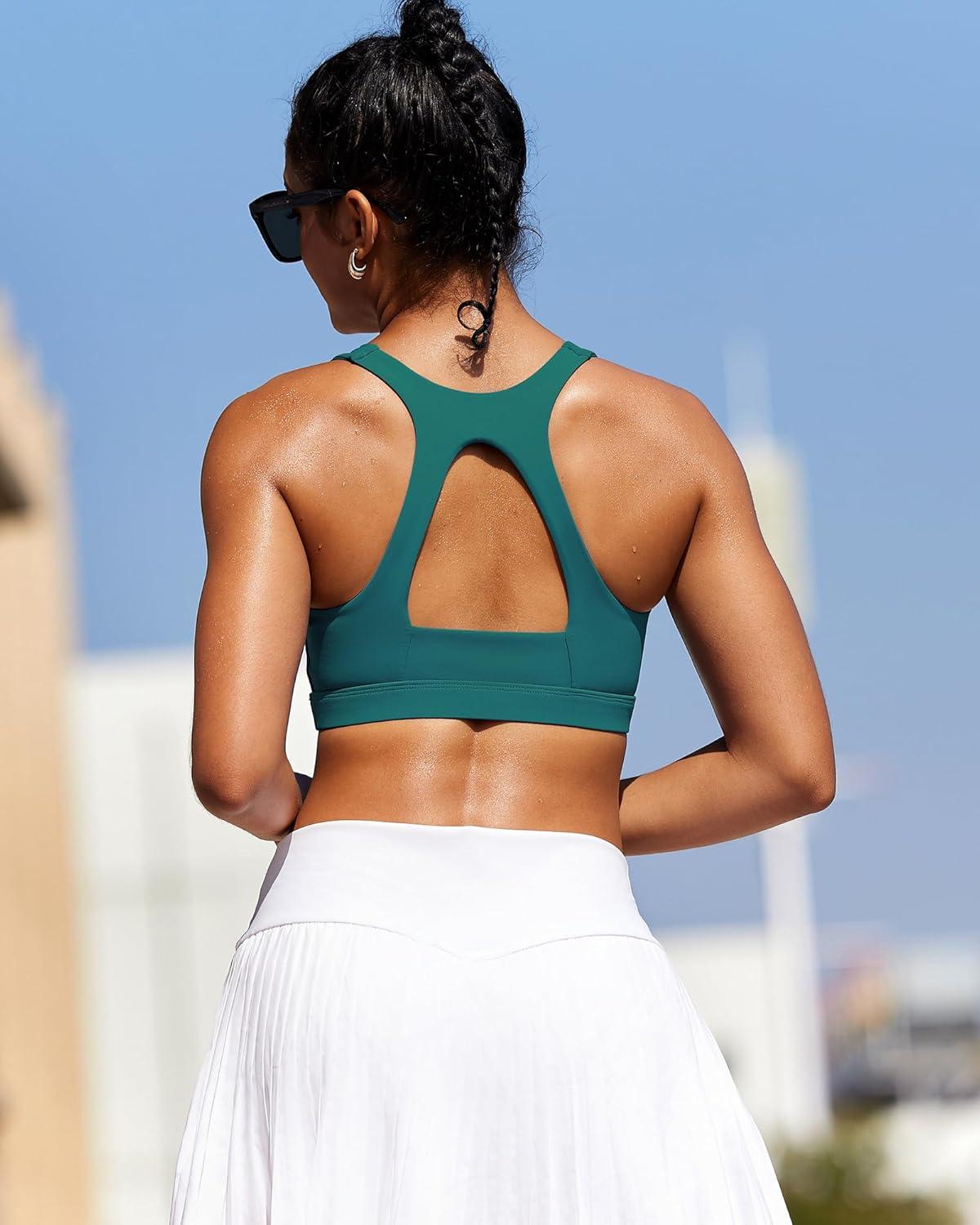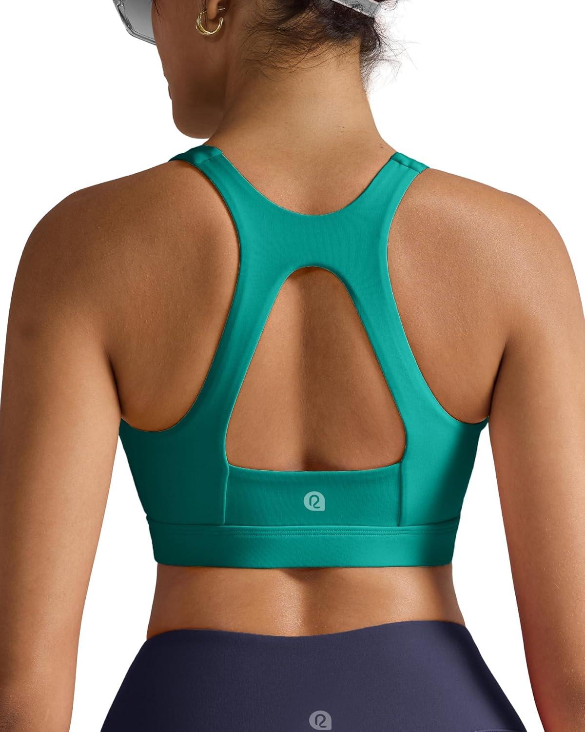 RUNNING GIRL Sports Bras for Women High Support,Racerback Molded Cup Sports Bra with Sewn in Pads(B-green)