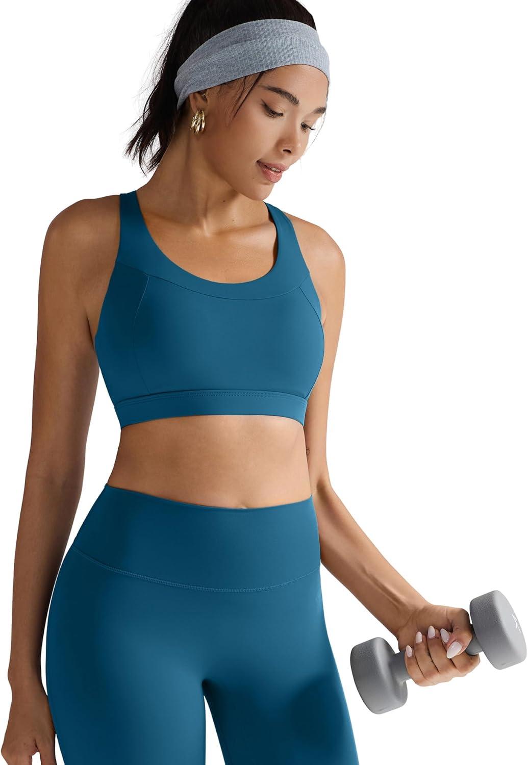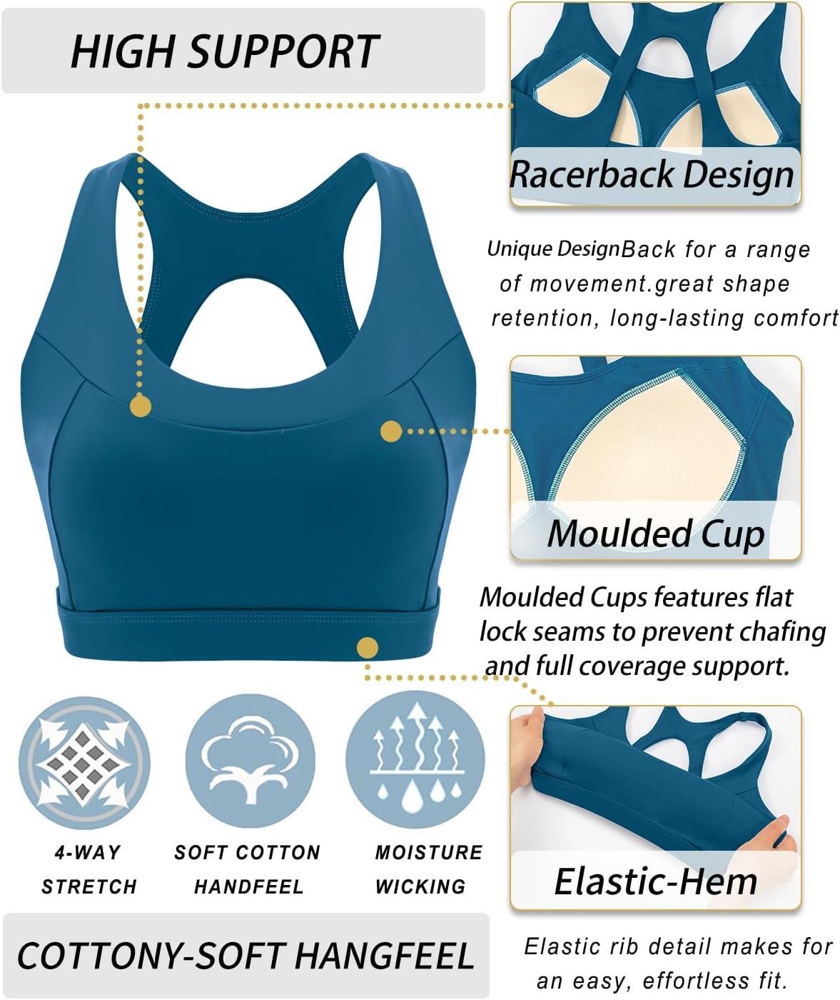 RUNNING GIRL Sports Bras for Women High Support,Racerback Molded Cup Sports Bra with Sewn in Pads(B-navy Blue)