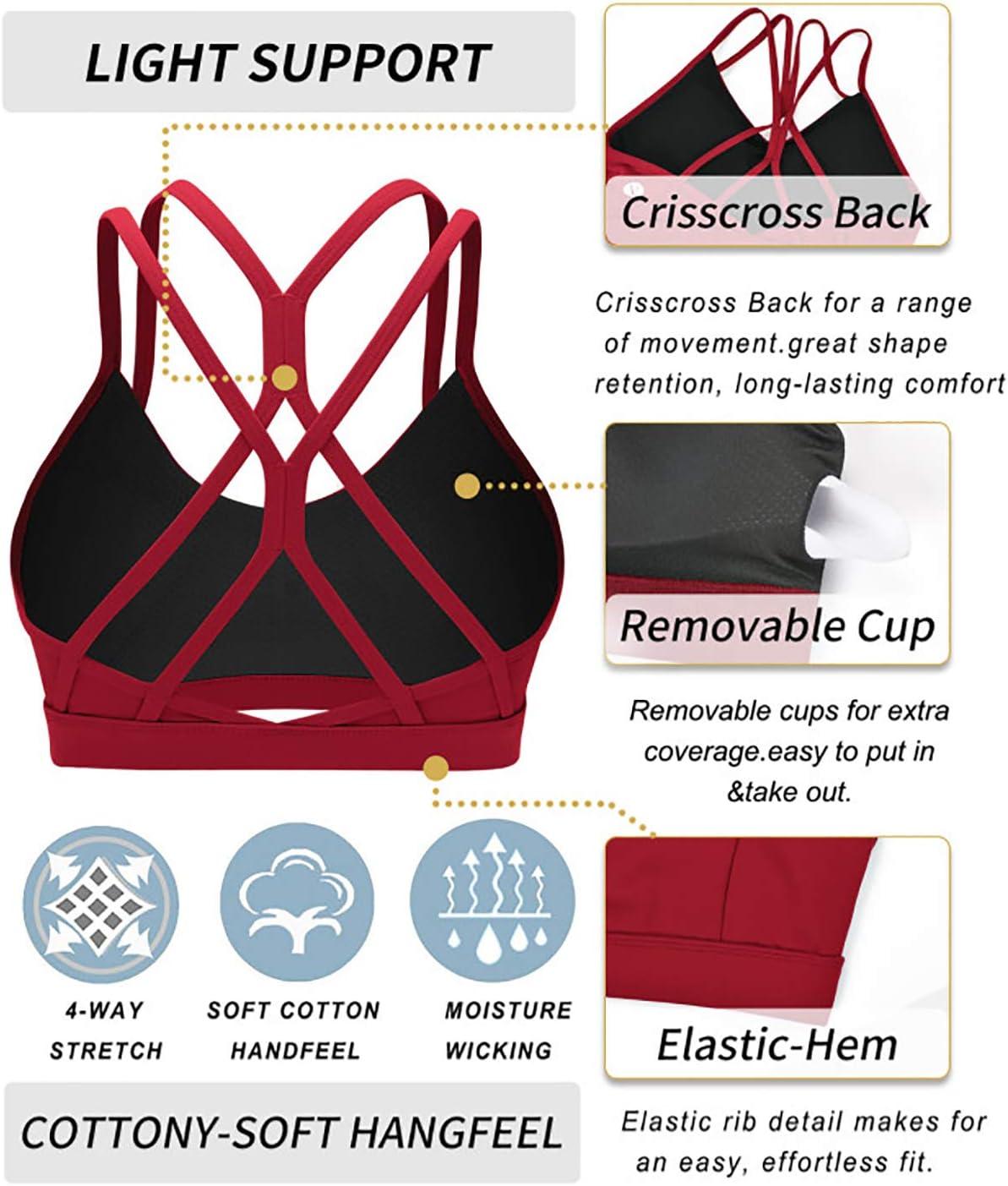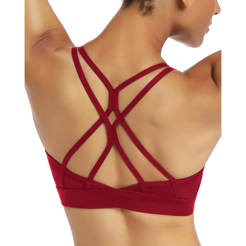 RUNNING GIRL Sports Bras for Women Pack Criss Cross Back Sexy Strappy Sports Bra Seamless Padded Yoga Bra with Removable Cups(Wine Red)